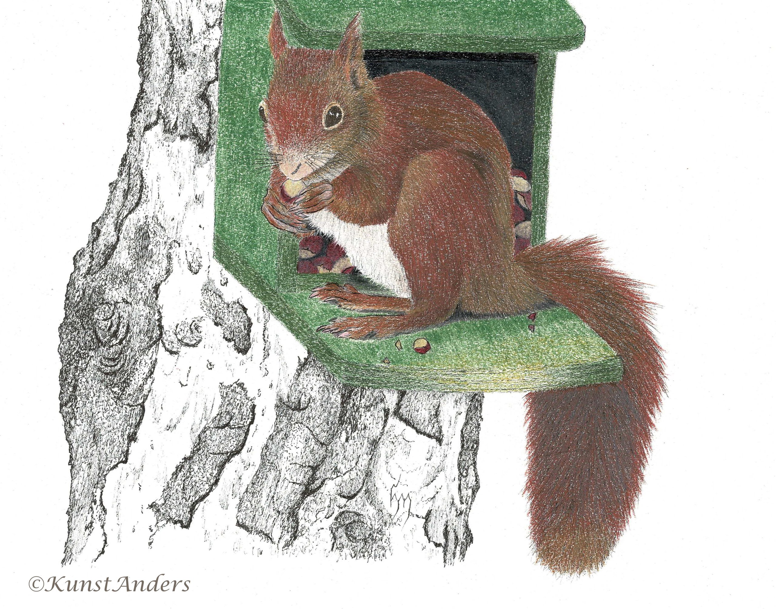 Wildlife Dieren Natuur Kleurpotlood Eekhoorn Pentekening Tekenpen Derwent Staedtler Kunstanders
