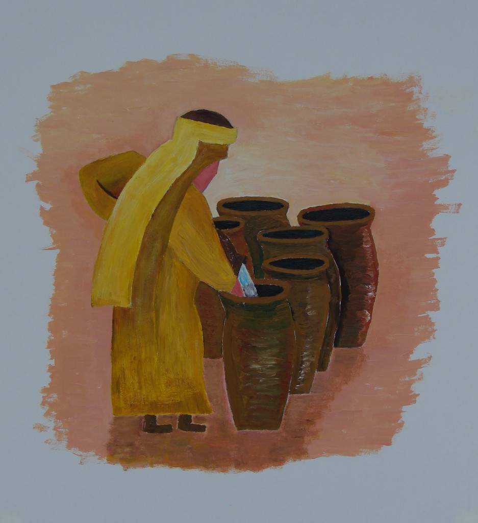 Johannes 2 vers 1-11: bruiloft te Kana; het eerste wonder van Jezus.