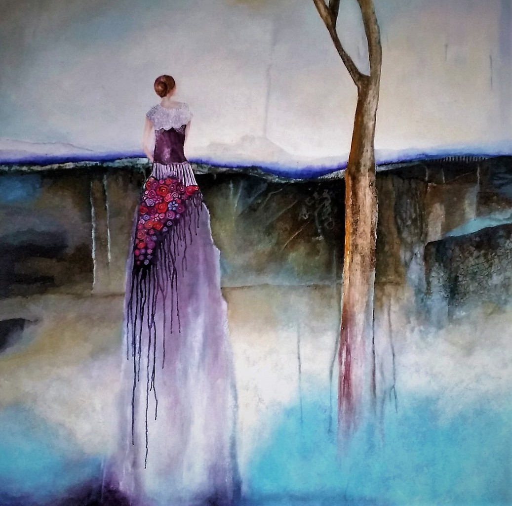 Schilderij Acryl Paars Vrouw Art Kleurrijk Woman Kunst Natuur Painting Lyrisch Nature Artwork