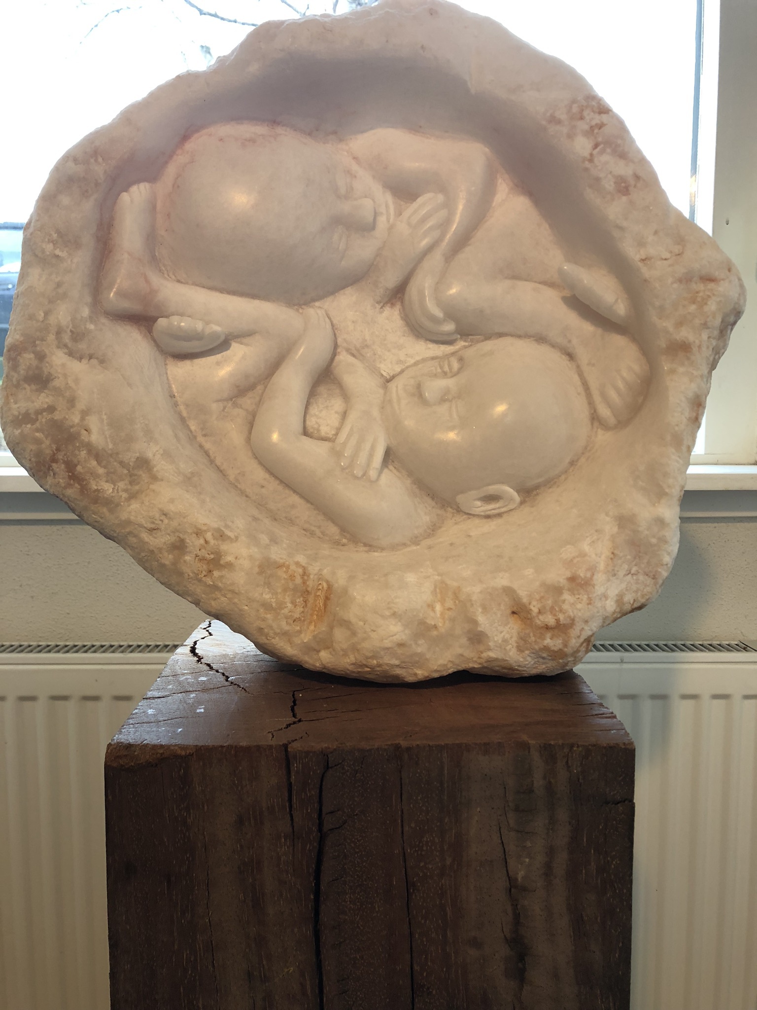Beeld van een ongeboren tweeling in albast.