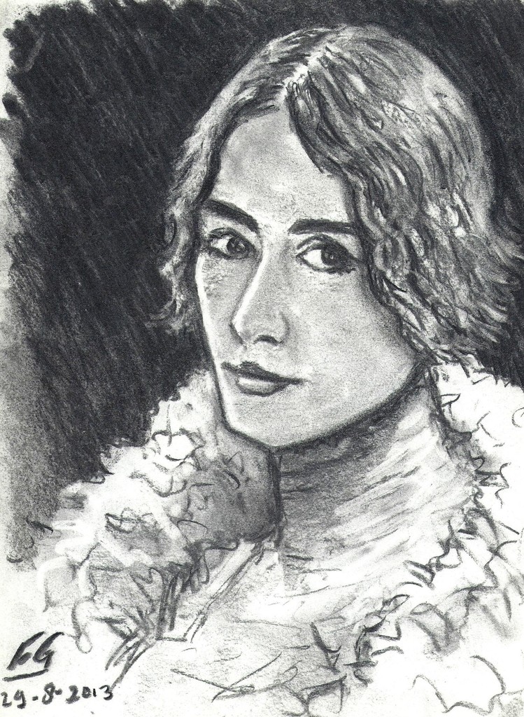 Vrouw portret schets houtskool