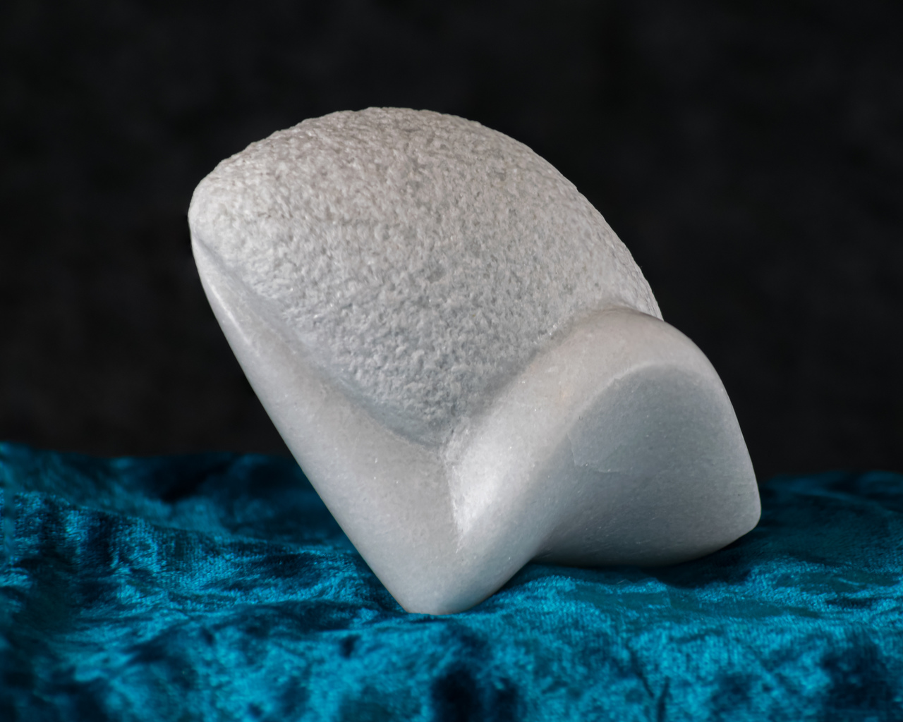 Opgetilt, gedragen en gericht. Miniatuur uitgevoerd in marmer. Fotografie Kees de Ruijter.