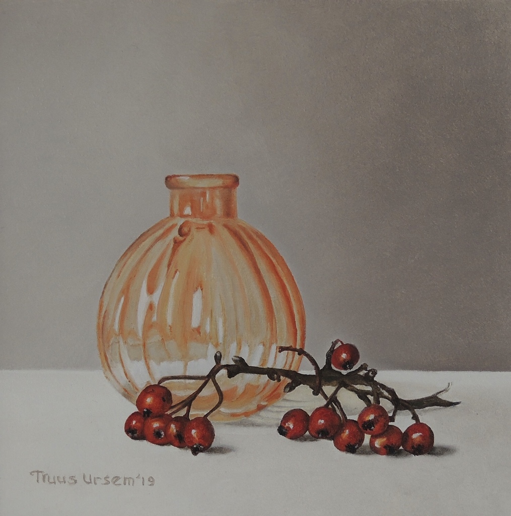 Oranje vaasje en rode bessen