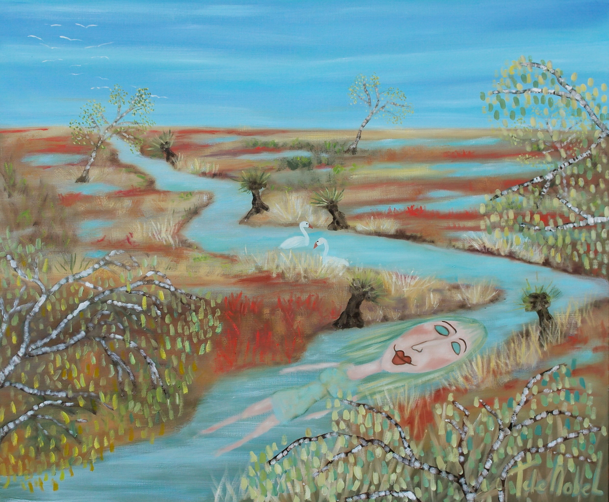 Tineke de Nobel is in de eerste plaats bekend om haar prachtig ontregelende afbeeldingen van mensen. Vliegende kasten en tafels, grappige monsters, aliens en ufo's bevolken haar schilderijen. Het blijft verbazen. Van tijd tot tijd maakt zij een serie schilderijen zonder levende wezens. Het resultaat kan dan op het eerste gezicht abstract lijken, maar het leven is nooit ver weg. Zij is geboren 1957 in Haarlem. Nu woont en werkt ze in Helmond.