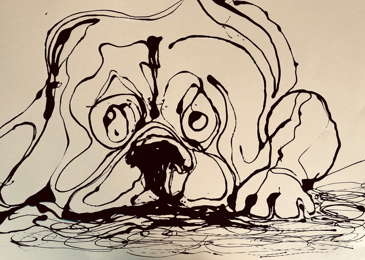 Deze boxer lijkt op die van een vriend. Hij ligt met zijn snuit plat op de grond.