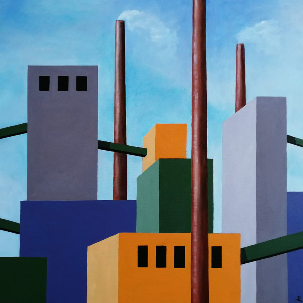 Compositie met fabrieksgebouwen.