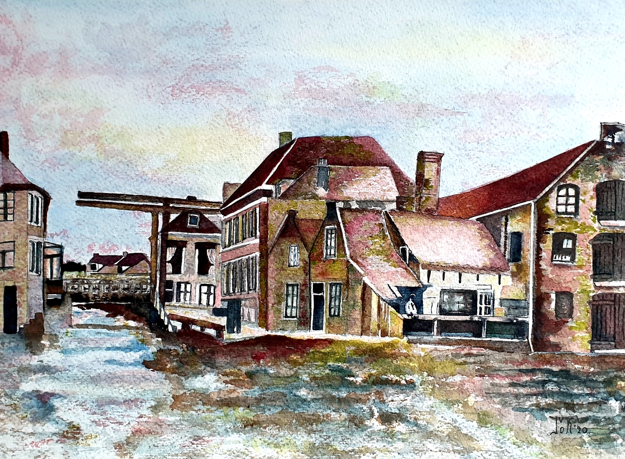 aquarel Ophaalbrug Overschie 40 x 50cm inclusief passe-partout