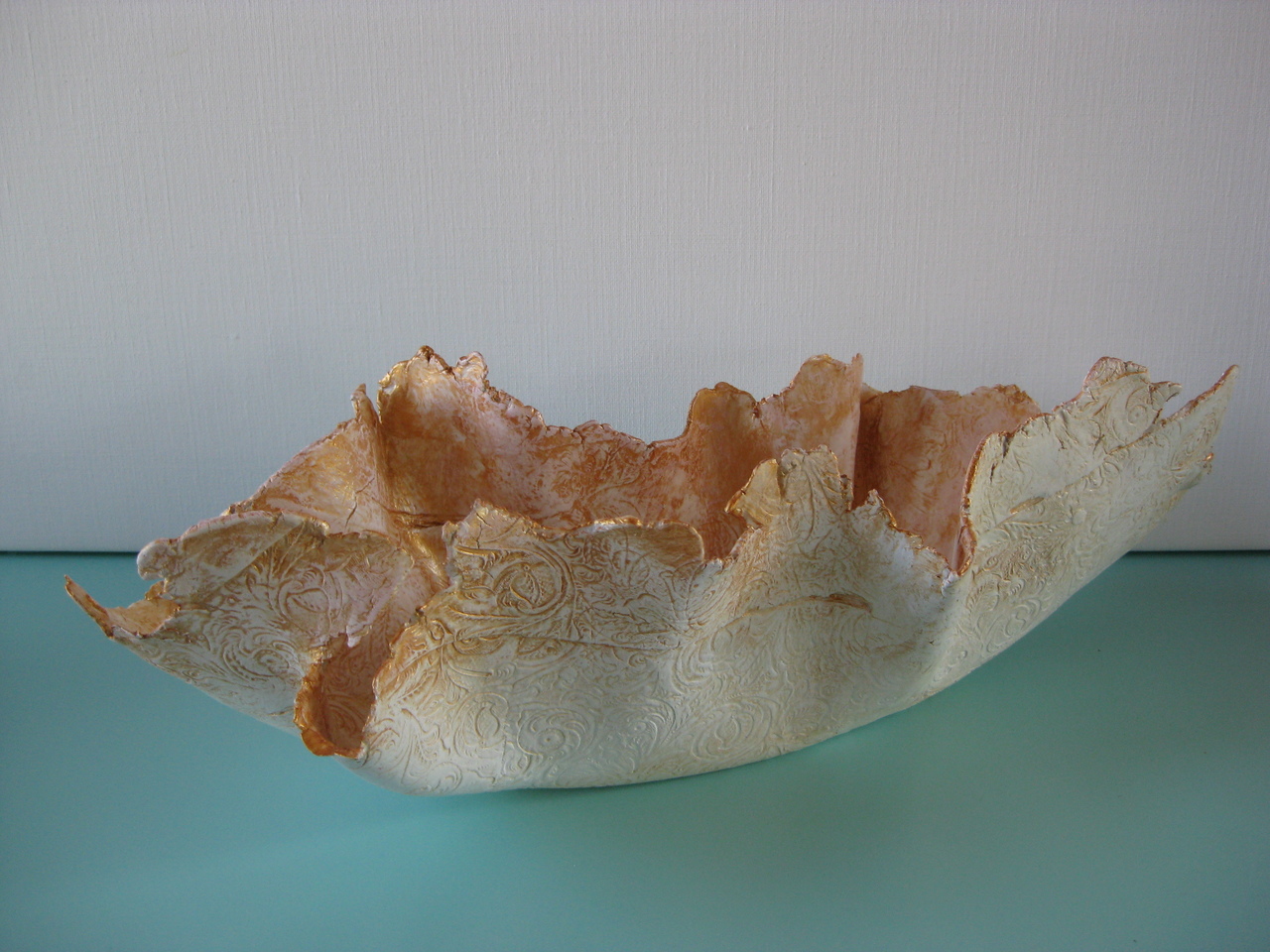 Organische sculpturen die voortkomen uit de zoektocht, de verwondering voor natuurelementen als fossielen, zeewieren,koralen, de schoonheid van hun afdrukken, de kleur van parelmoer.