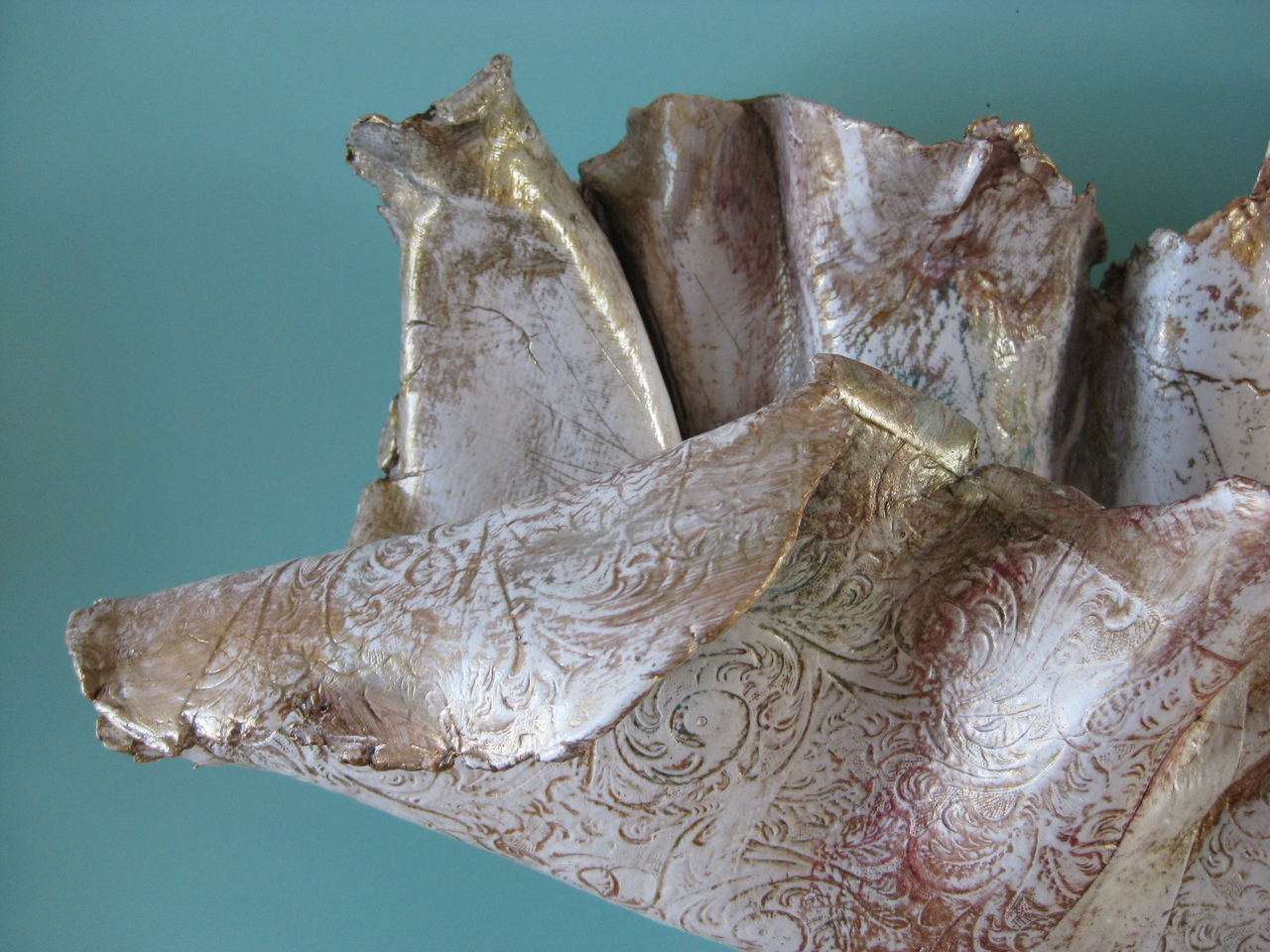 Organische sculpturen die voortkomen uit de zoektocht, de verwondering voor natuurelementen als fossielen, zeewieren,koralen, de schoonheid van hun afdrukken, de kleur van parelmoer.