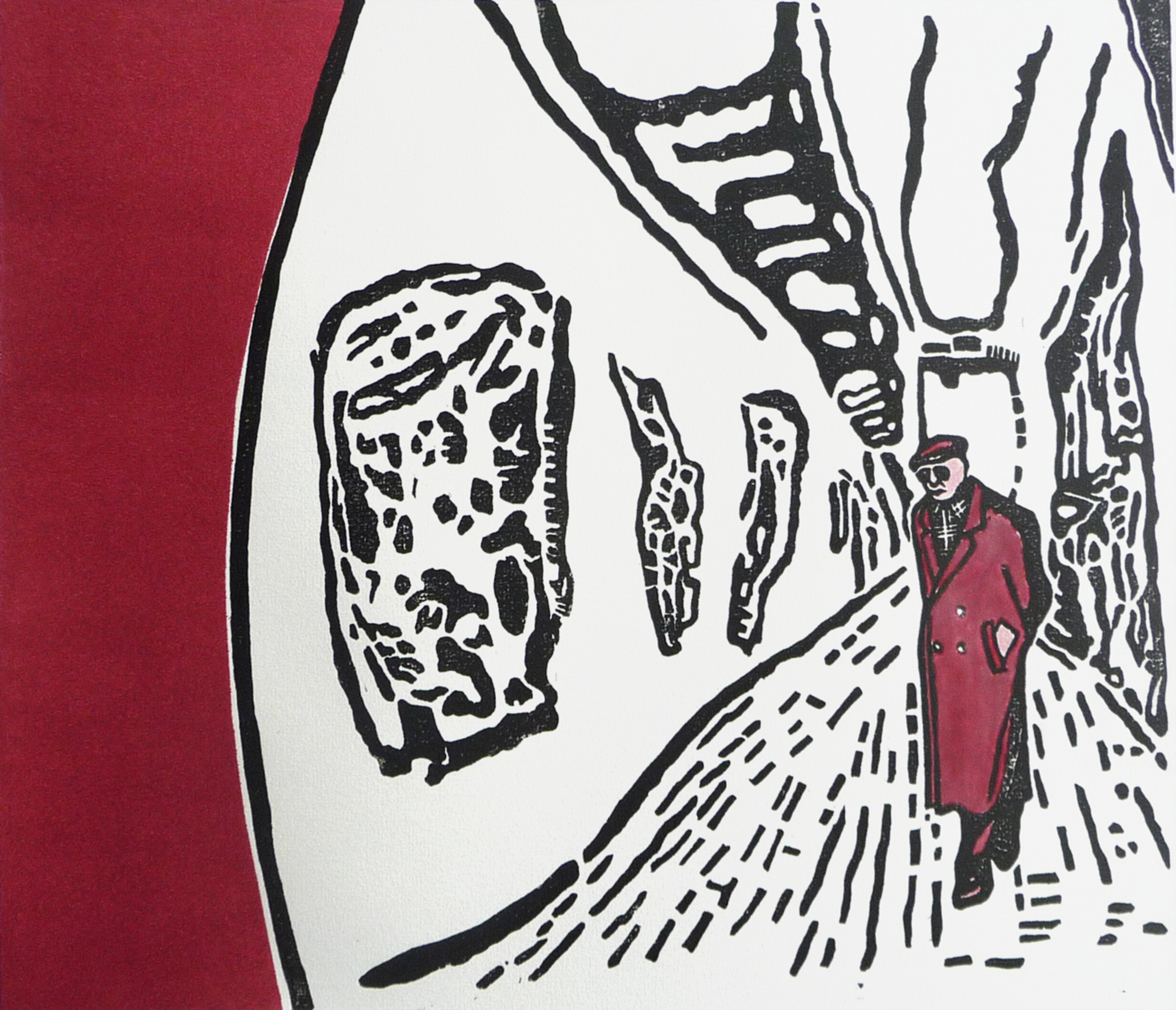 Wit Rood Zwart Man Museum Red Black White Cut Lino Hoogdruk Linosnede Interior Linoleumsnede Visitor Bezoeker Museumstukken 2019