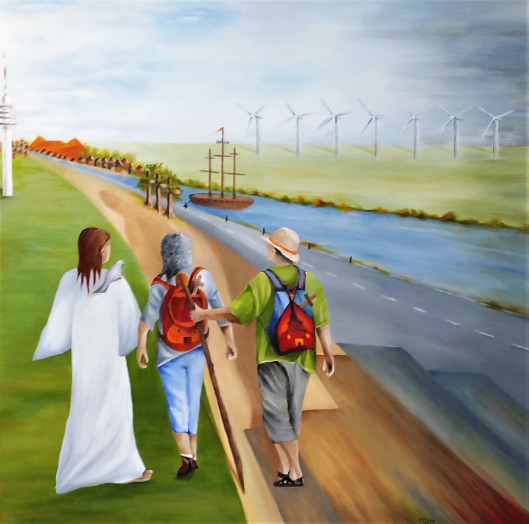 Wie ben je en waar ga je heen? Waar is jouw bestemming? Hedendaagse vertaling van de reizigers naar Emmaus. Gebaseerd op Lukas 24: 11-35. Geplaatst in de polder bij Lelystad.