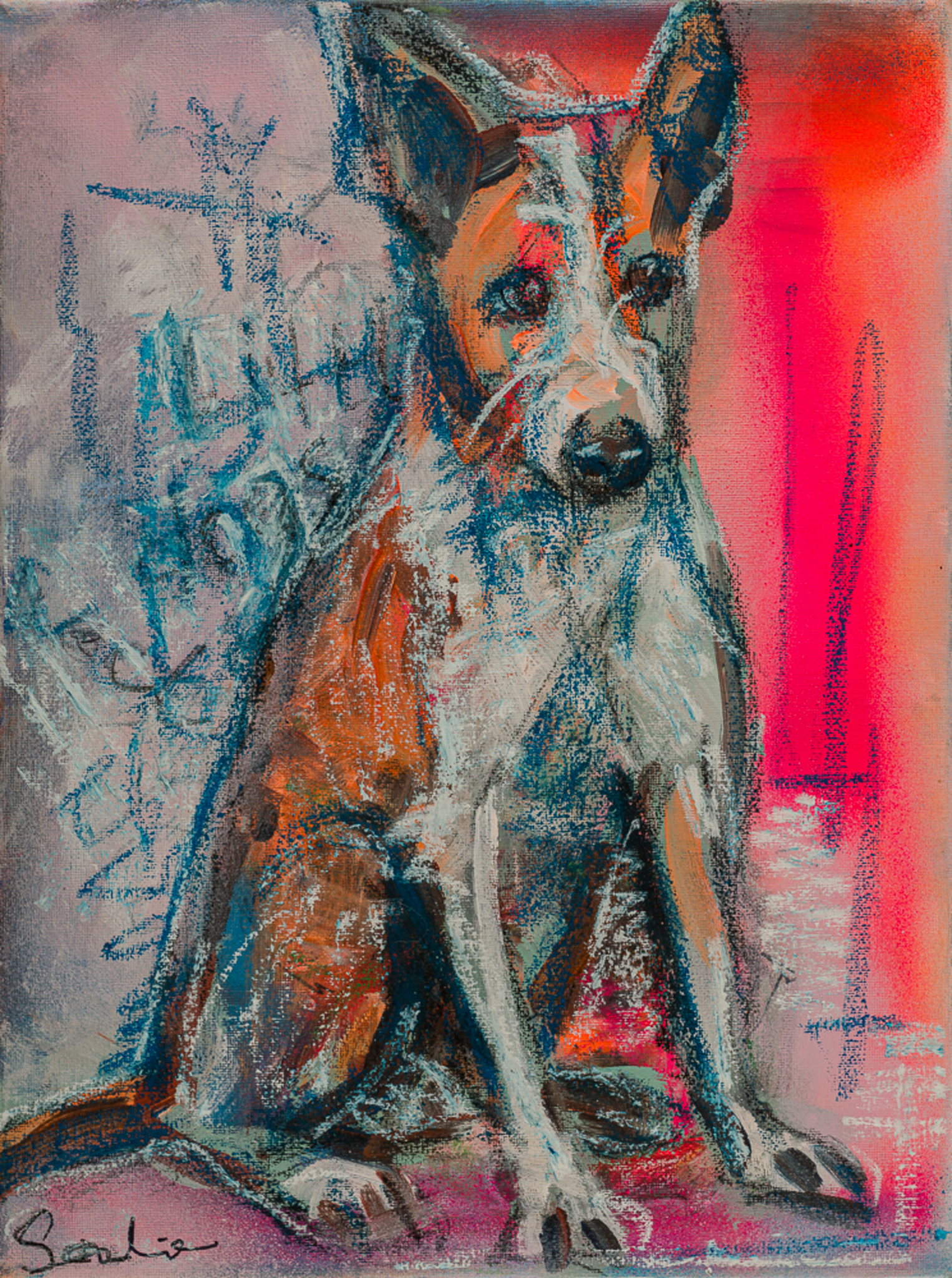 Schilderij Dier Portrait Painting Hond Dog Portugees Hondenschilderij Podengo