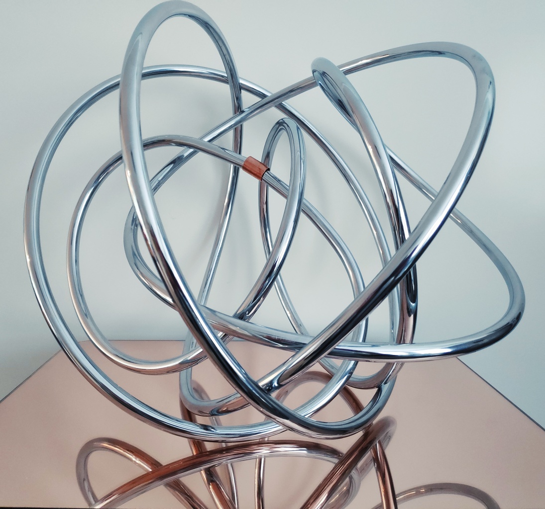 Infinity Oneindigheid Vrijheid Beweging Abstactie Design Modern Chrome Chroom Rvs Koper Spiegelglas Mixed Media Uniek Unica