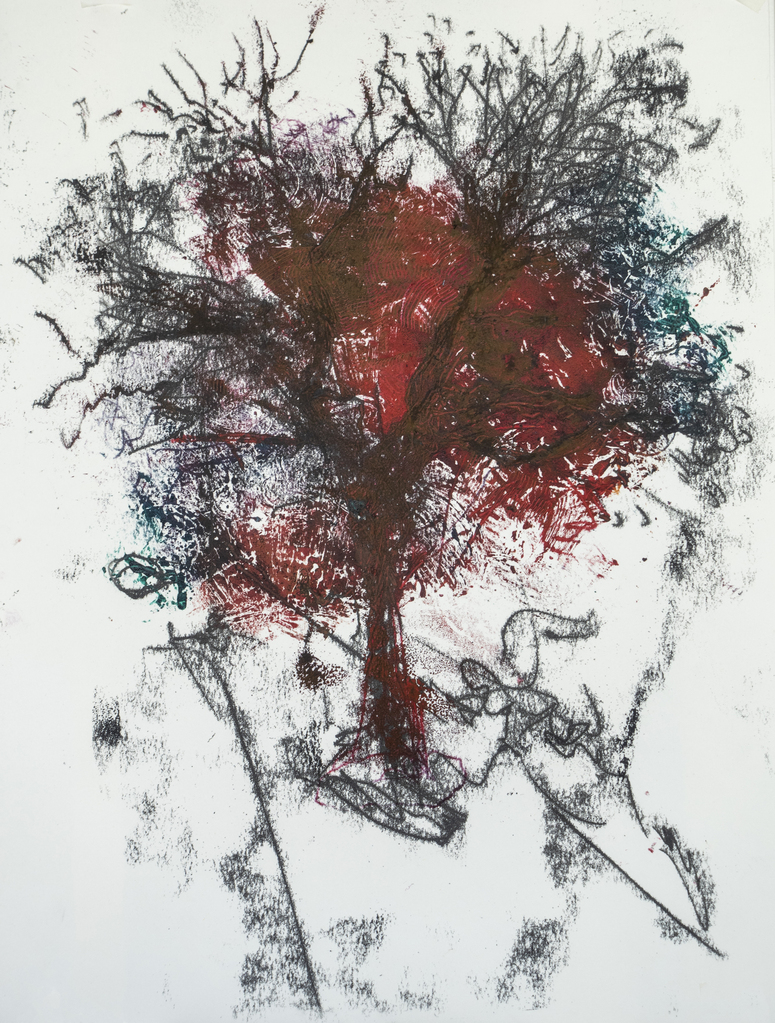 Rood Abstraherend Boom Monoprint