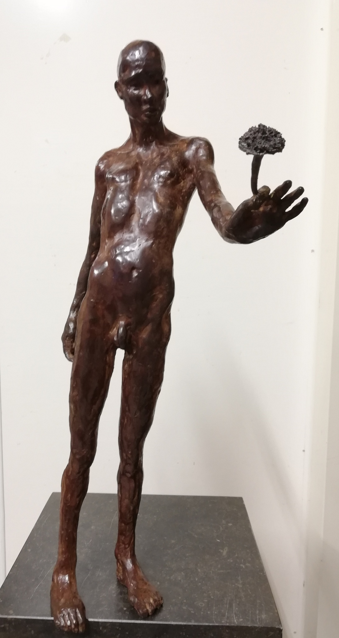 Bronzen beelden in balans. Schoonheid en emotie zijn haar drijfveer. Zij streeft ernaar om met relatief eenvoudige lijnen een visuele spanning te creëren.