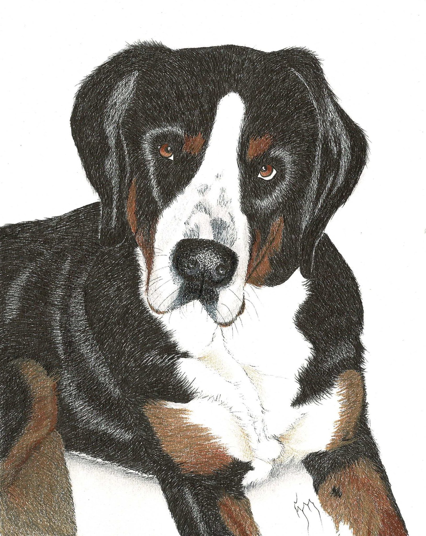 Honden Tekening Huisdier Pentekening Bernersennen Kunstanders Zwitsersesennen