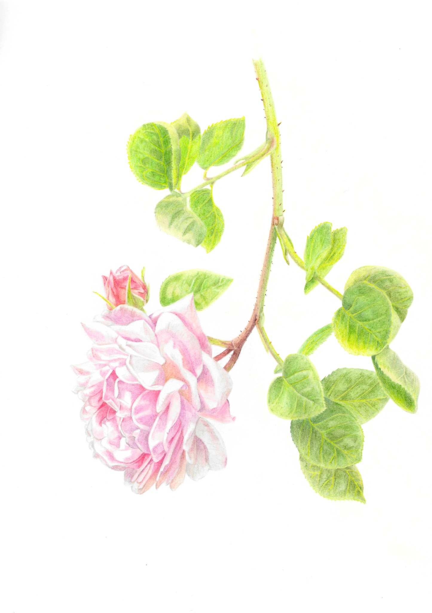 Roze klimroos in kleurpotlood op Stonehenge papier
