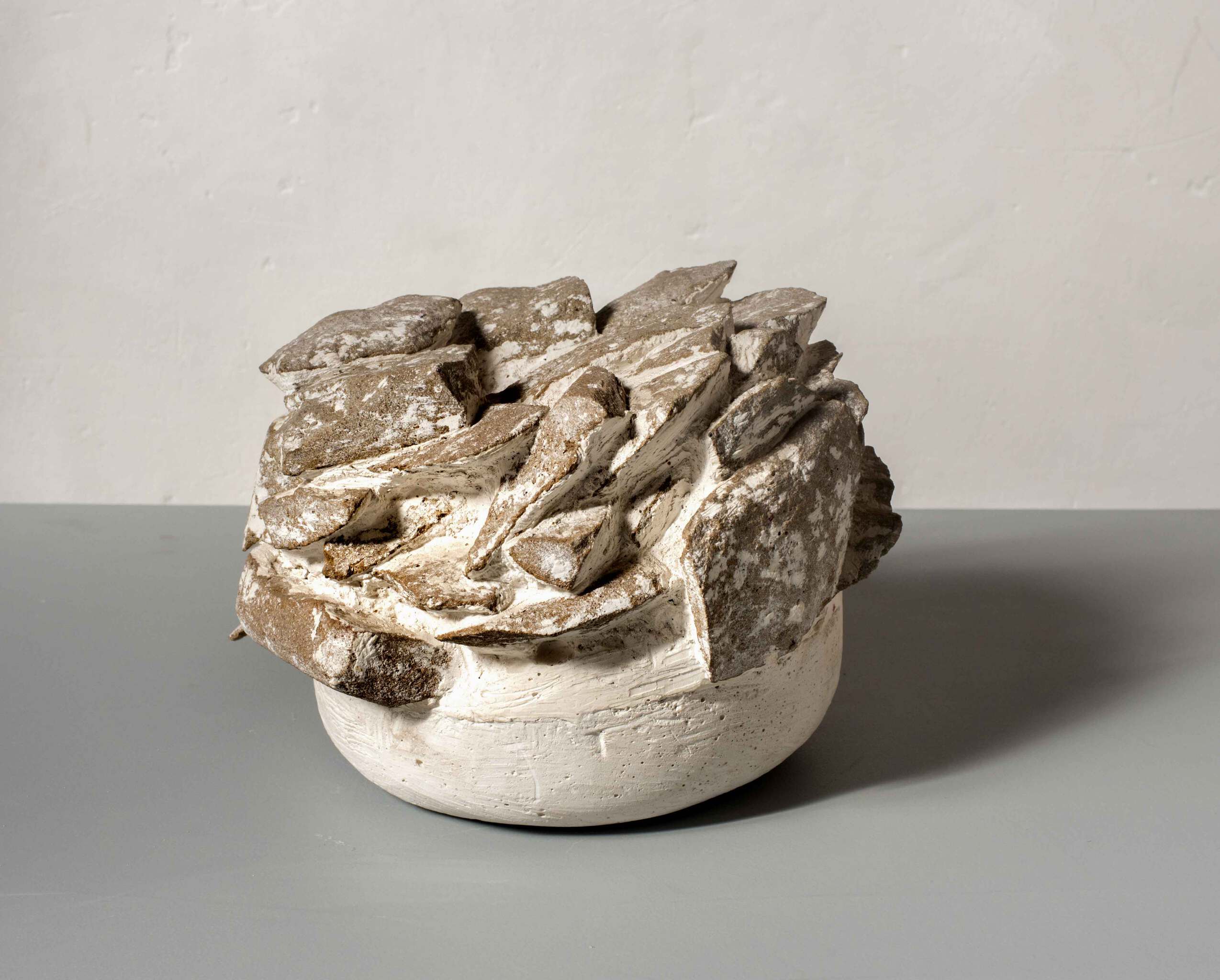 'Fragments' - een kleine formaat sculptuur van gips en daarop gebroken stukjes steen, gemaakt in 1995 door Carlos Granger. nog beschikbaar