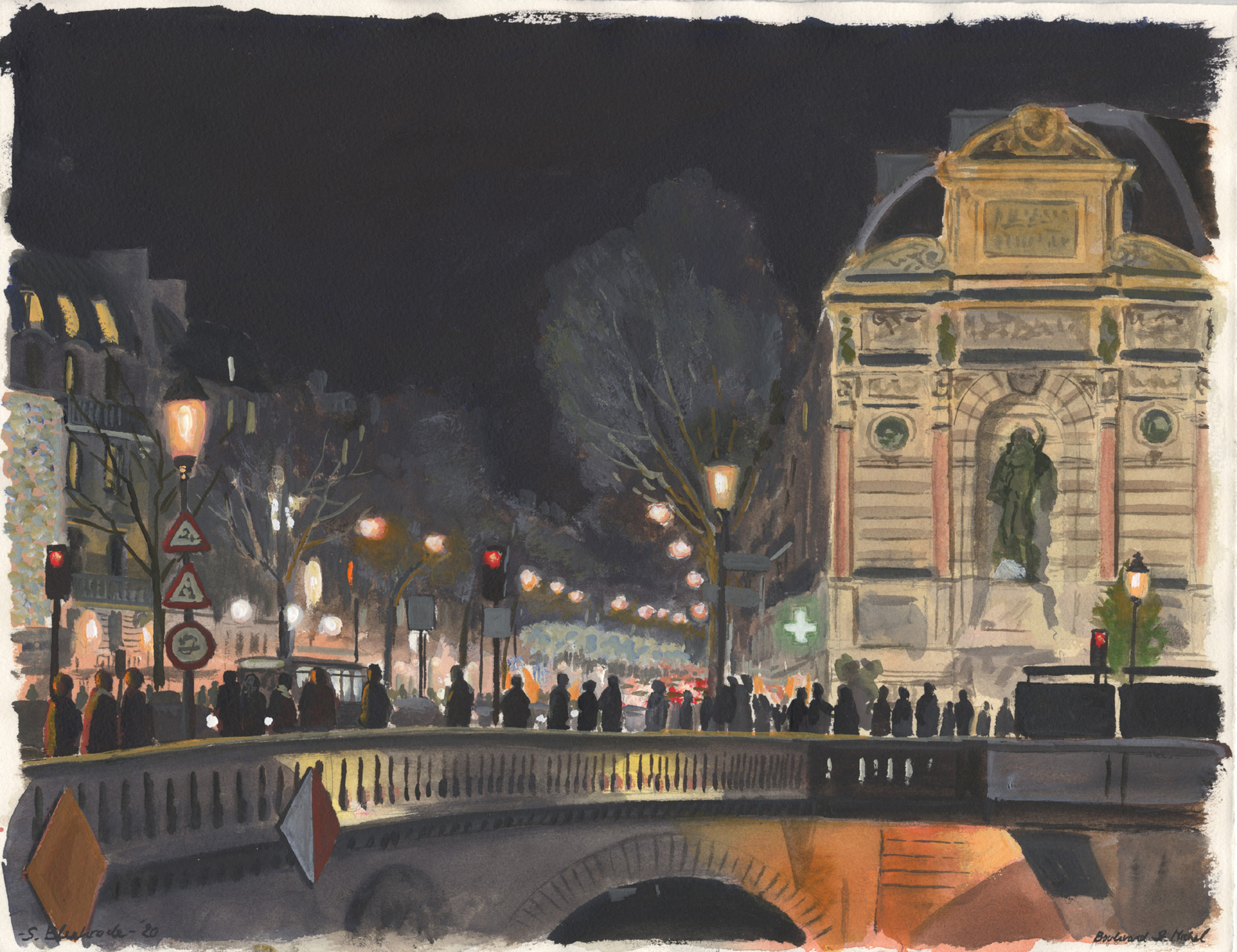 Schilderij Frankrijk Aquarel Painting Realisme Realism Impressionisme Stad Parijs City Impressionism Watercolour France Paris