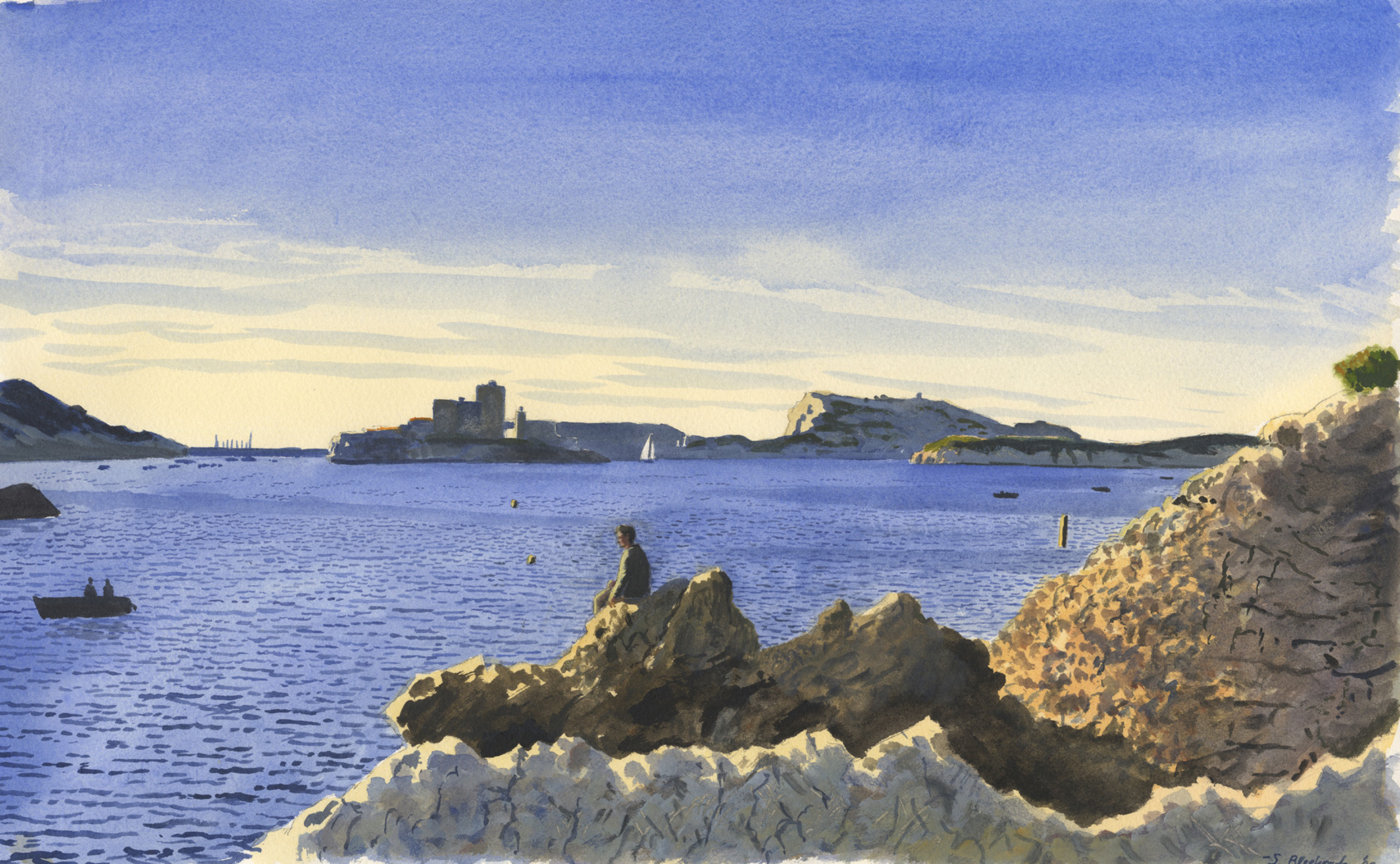 Schilderij Zee Licht Frankrijk Aquarel Painting Light Realisme Realism Sea Watercolour France