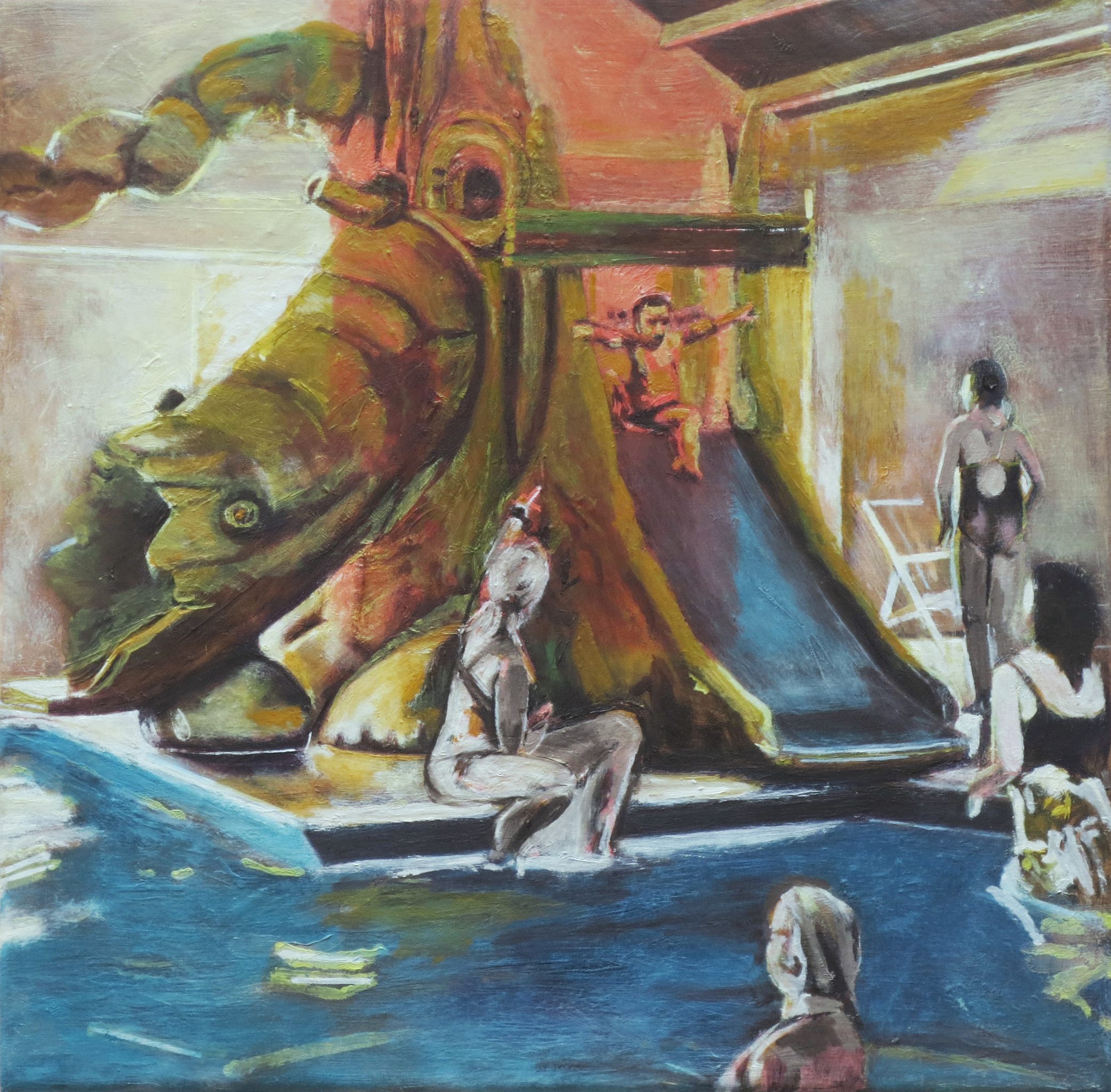 De mens geplaatst in een setting trekt mijn aandacht en nieuwsgierigheid. Mijn uitgangspunt bij het maken van mijn huidige schilderijen is de spelende mens. De weergave van de ruimte met zijn attributen zoals de belichting, een natuurlijke omgeving of een in cultuur gebrachte omgeving, brengen mij opnieuw in contact met die ervaren werkelijkheid. Wat mij bezighoudt is dat het geschilderde zich gaat verbinden en in de plaats komt te staan van de opgedane indrukken en gevormde herinneringen.