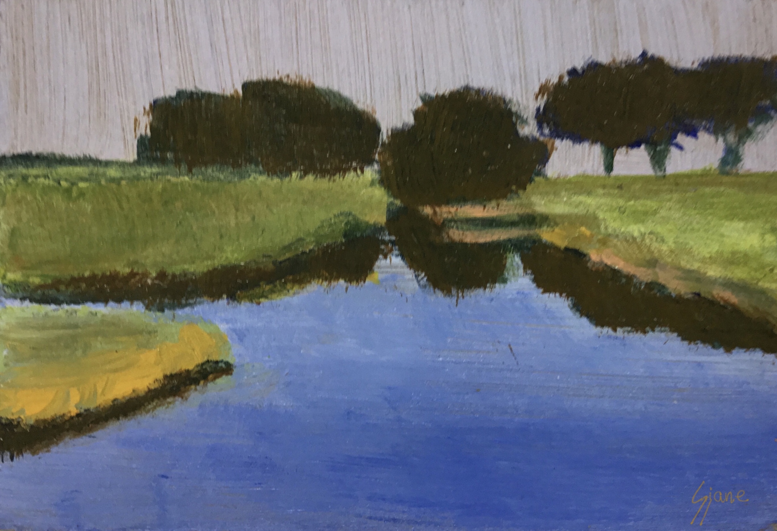 Het landschap is mijn grootste inspiratiebron. In de zomer heb ik veel buiten geschilderd. Mijn landschappen zijn kleurrijk en sterk geabstraheerd. Op het moment zijn mijn landschappen abstract.