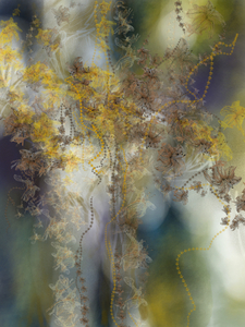 painted with Diana’s own made digital photo-pencels of home grown leaves en dalia’s. available in various sizes, printed on dibont and framed