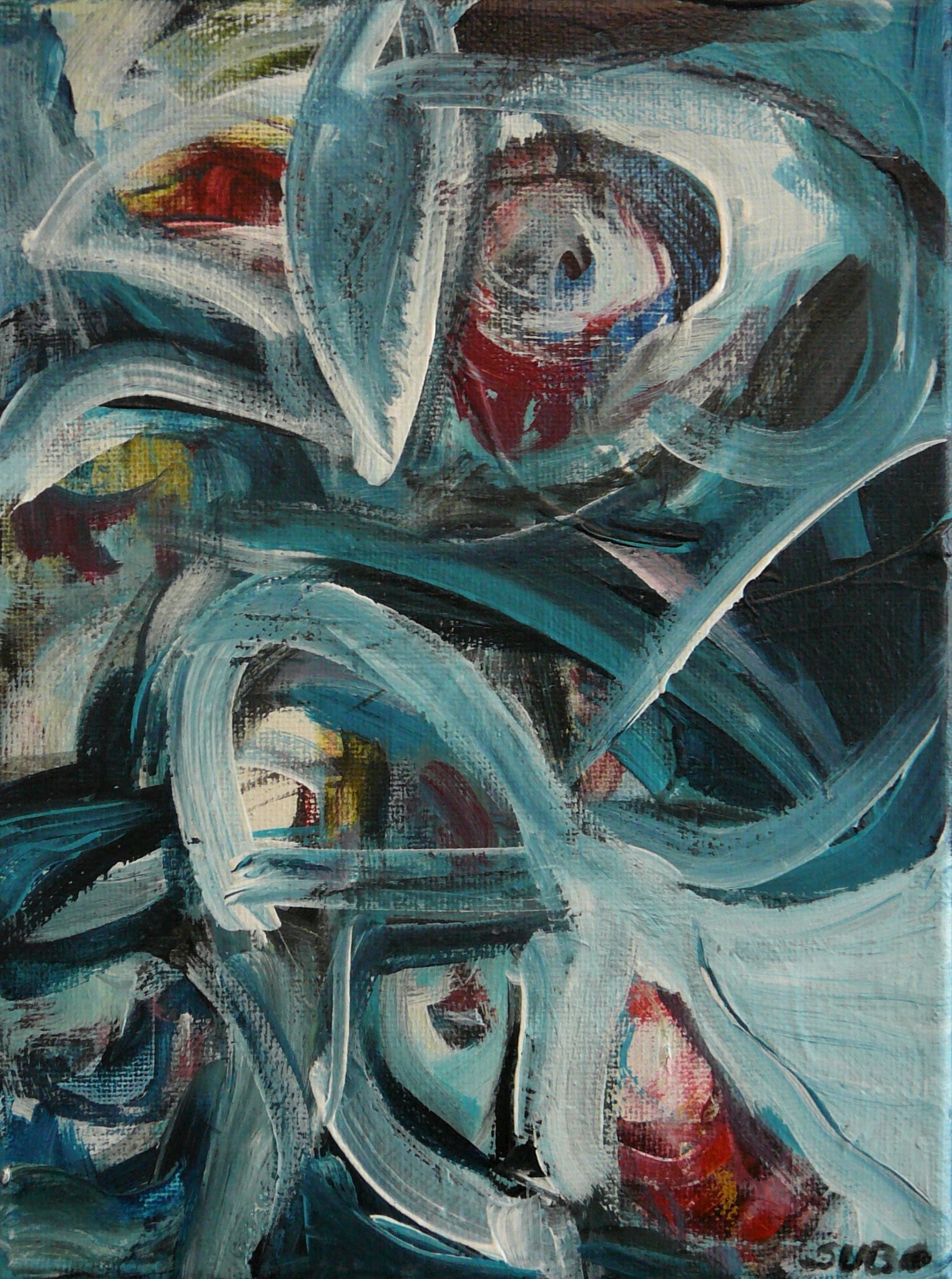De schilderijen ontstaan intuïtief, er vormen zich emotionele en expressieve beelden; het Zijn en Schijn van de mens als waarneming en het onderlaagse gevoelsleven zijn ondefinieerbaar, maar voor haar in beeltenissen te vangen.