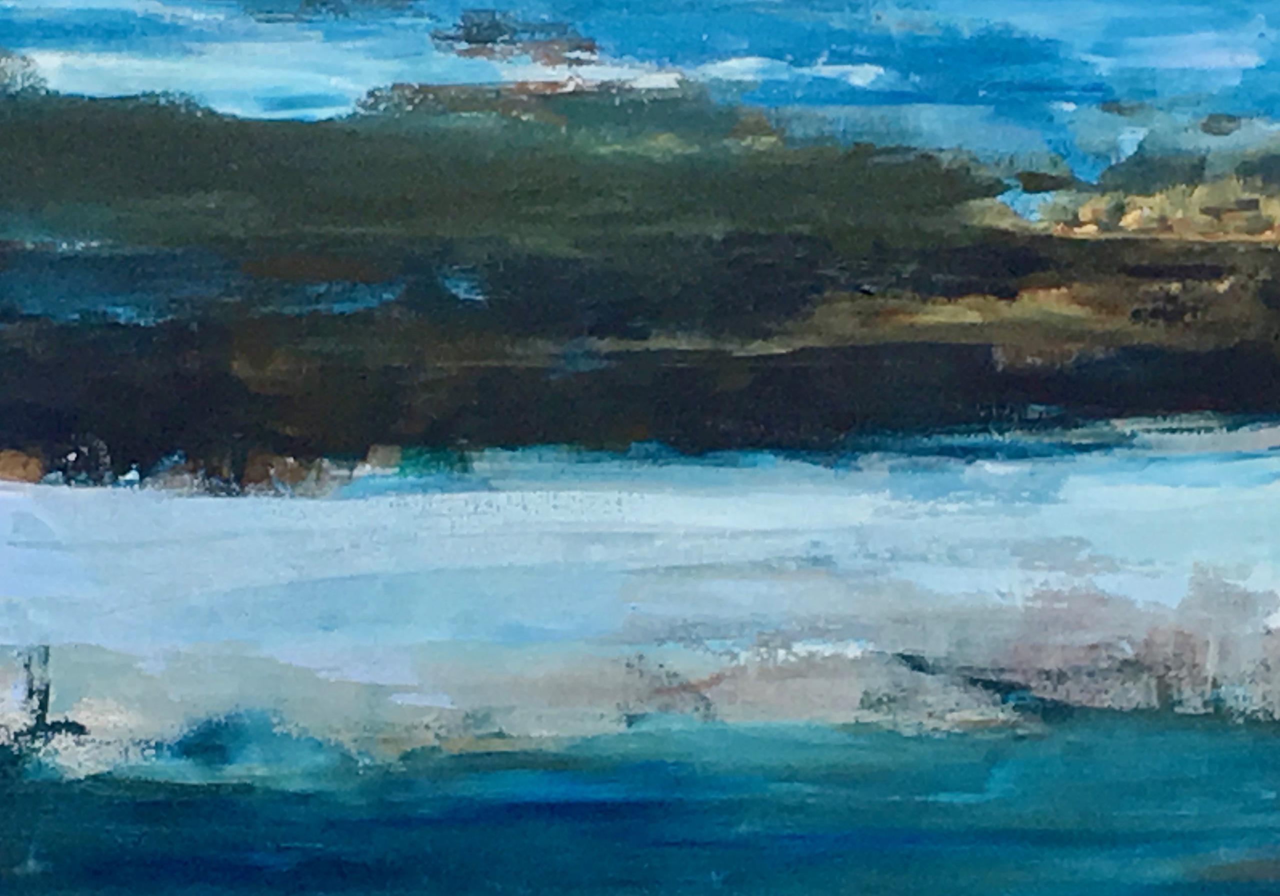 'Het landschap als vertrekpunt'. De natuur wil ik in al haar kleur, licht en donker, vormen en structuren weergeven. Mijn ontwikkeling blijft doorgaan, er is zoveel om naar te kijken en uit te drukken op het doek. Abstracter werken staat nu op de voorgrond: vlakken, kleuren, lijnen, compositie vormen tot een beeld, dat spreekt.