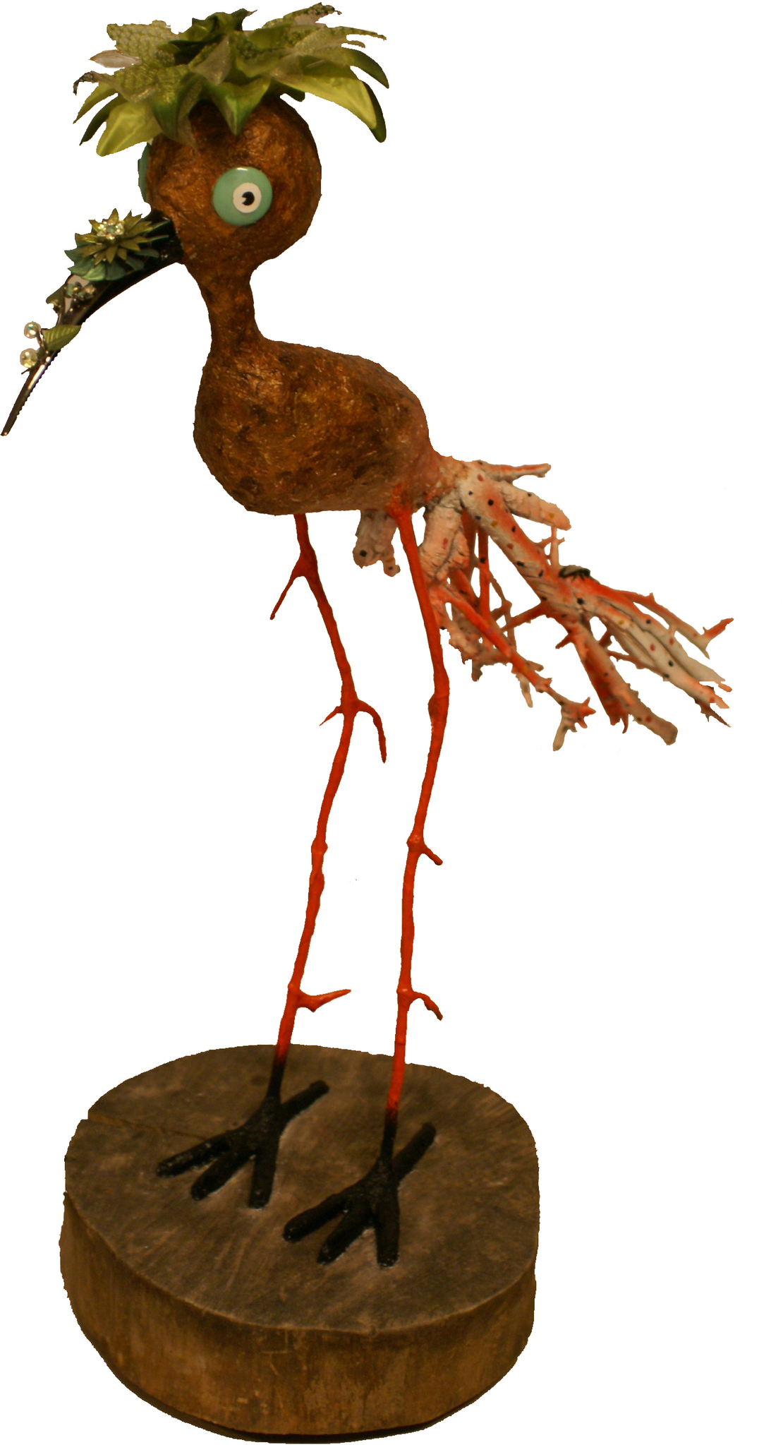 mijn naam is Fred Dessing en ik maak van rest-en afvalproducten én van papier-maché letterlijk heel vreemde vogels. puur uit hobby ben ik hier aan begonnen en heb inmiddels ruim 130 exemplaren vervaardigd en verkocht. ik sta regelmatig op kleine kunstmarkten, voornamelijk in de Randstad waar ik mijn vogels probeer te slijten. het zijn 3 dimensionale vogels, gemiddeld zo'n 70 cm hoog en alleen geschikt om binnenshuis te plaatsen, maar ik vervaardig nu ook exemplaren die bijvoorbeeld in de tuin geplaatst kunnen worden. hier ben ik mee gestopt omdat de combinatie papier-maché en de tegenwoordige natte omstandigheden buiten niet ideaal was