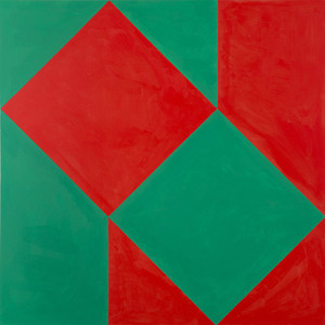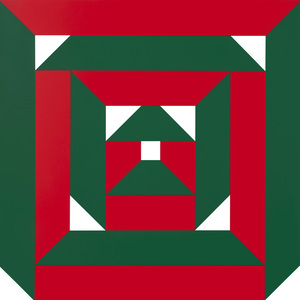 'Raster - groen-rood 4.' - kleurige geometrisch-abstracte kunst, in zeefdruk