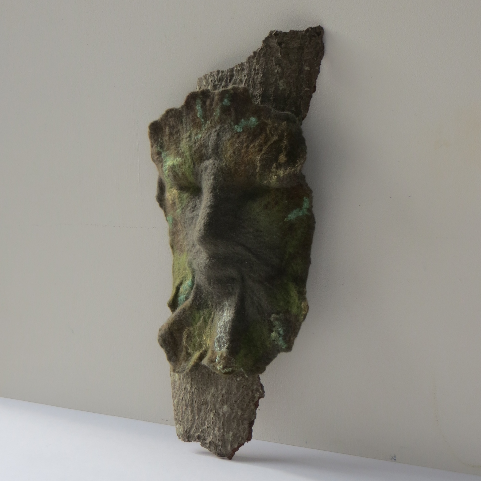 Handgevilte wol in combinatie met boomschors