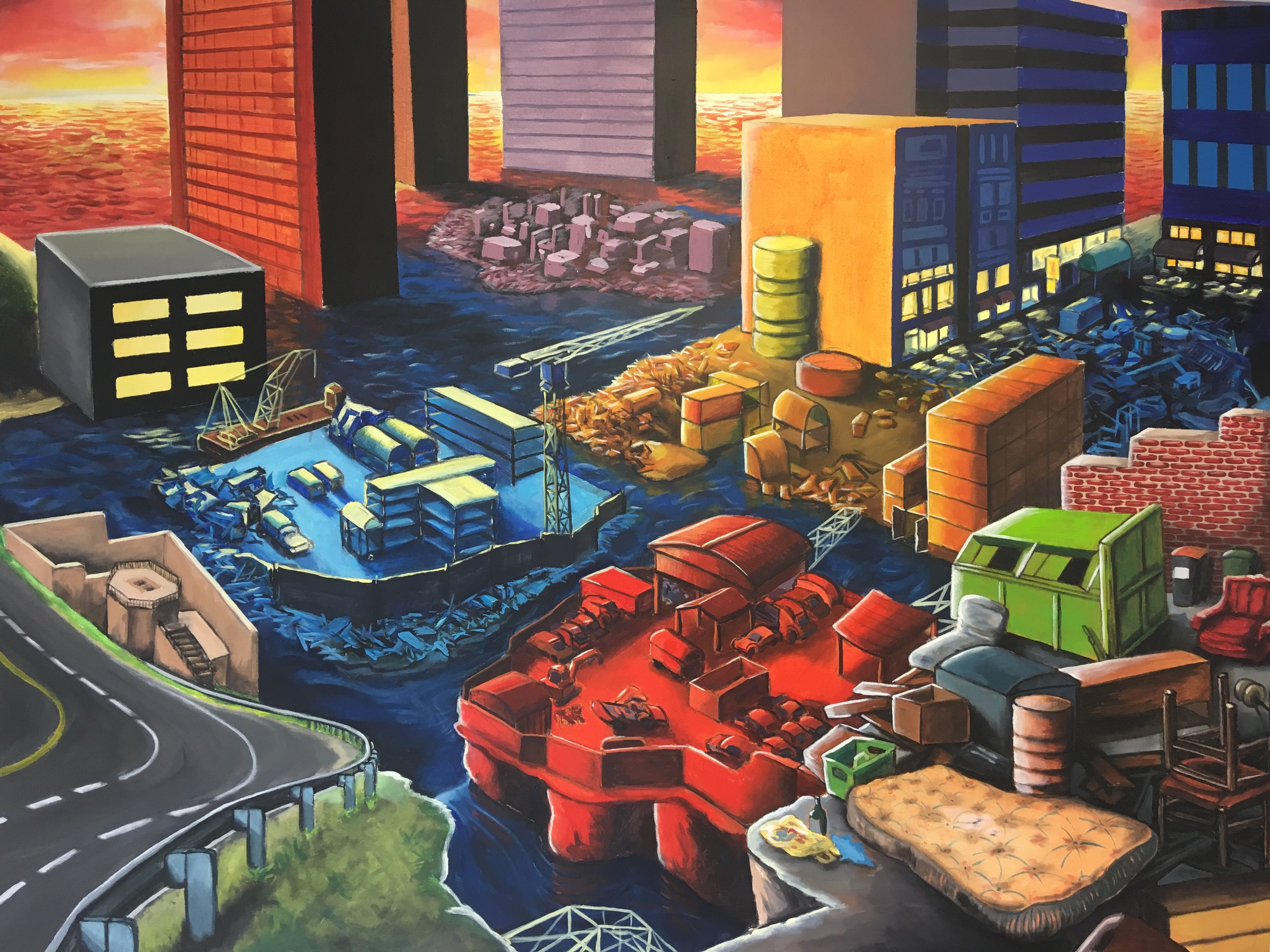 Water Harbour Landscape Container Flats Flat Colour Night Delta Dirty Levels Rubble Junkyard Pile Distopian Constructionsite Flooded Matrass