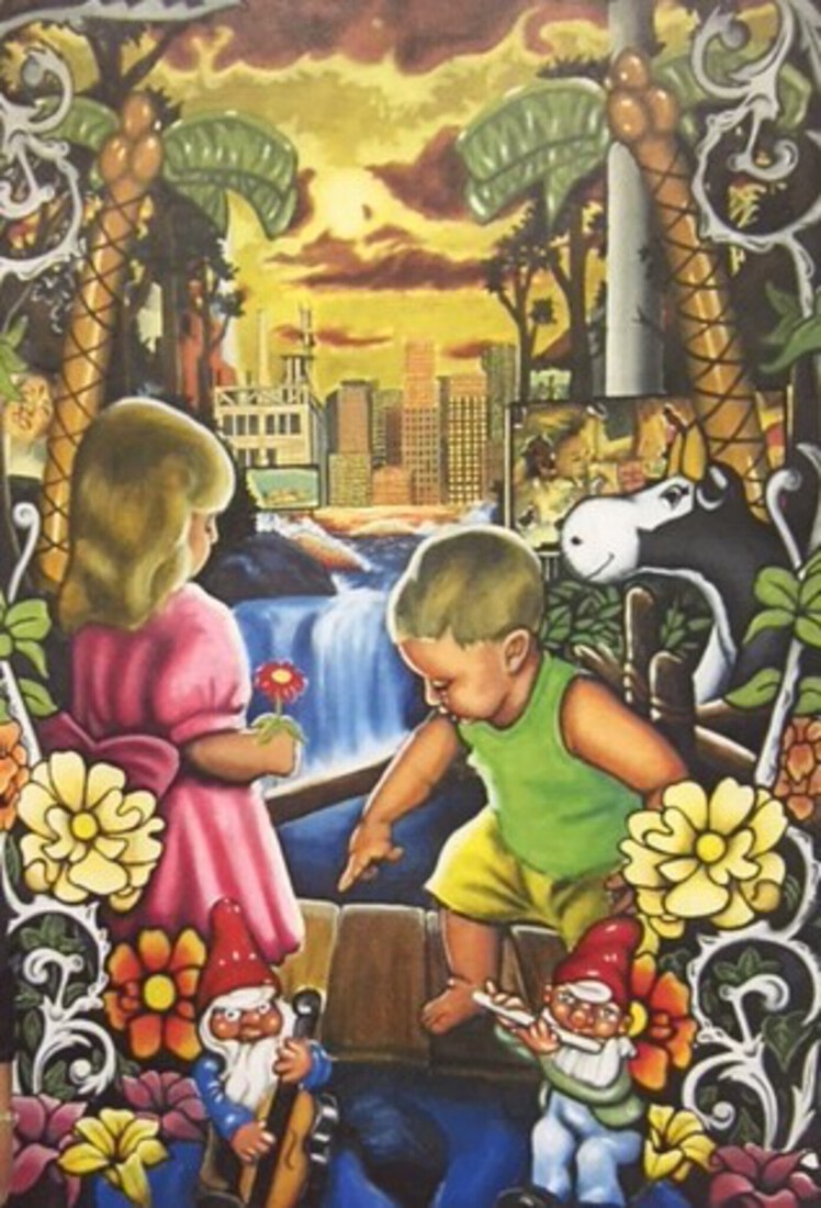 Cow Girl Boy Palm Tree Garden And Factory Kitsch Waterfall Pollution Inflatable Gnomes Toddlers