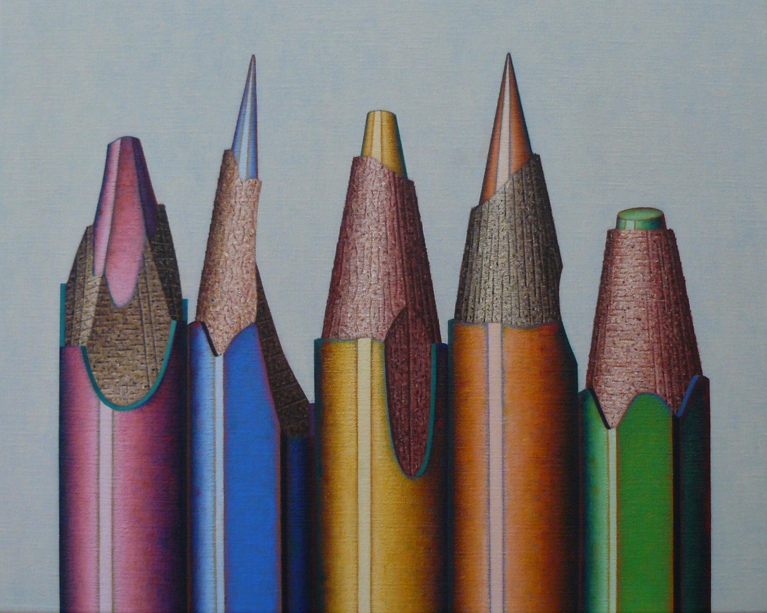 Een olieverfschilderij uit de serie ' Kleurpotloden '
