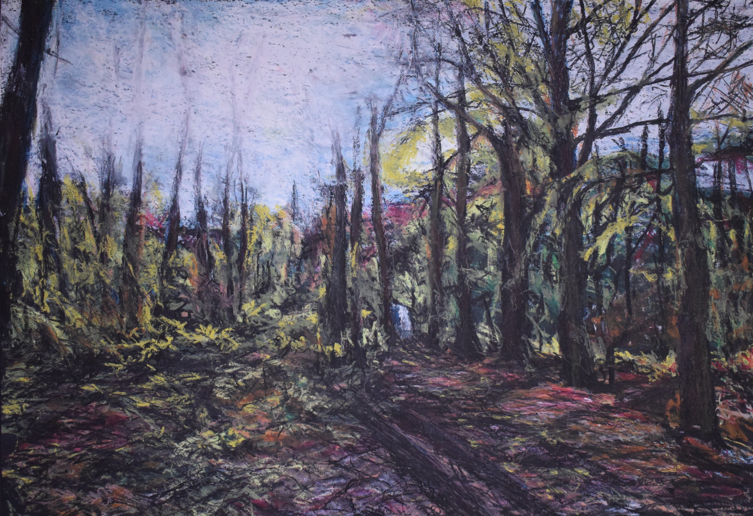 Het uitgangspunt van de tekening is een foto uit de natuur. Het materiaal dat ik heb gebruikt is oilbar op stevig zwart papier.