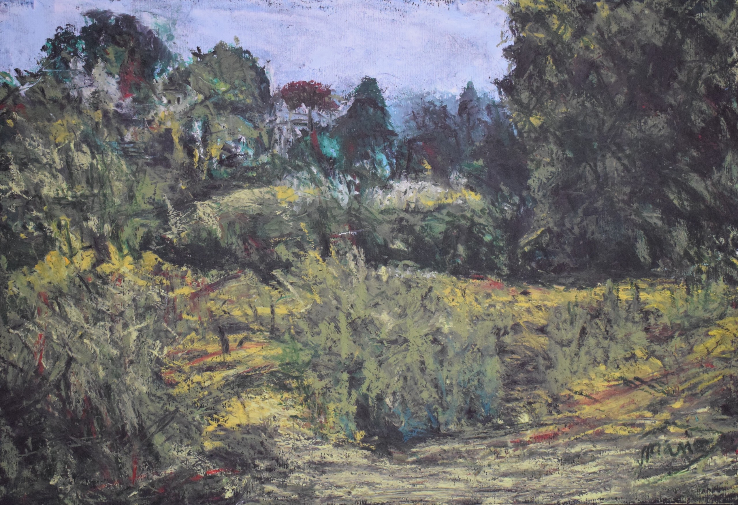 Het uitgangspunt van mijn tekening is een foto van de natuur. Het materiaal dat ik gebruik is oilbar.