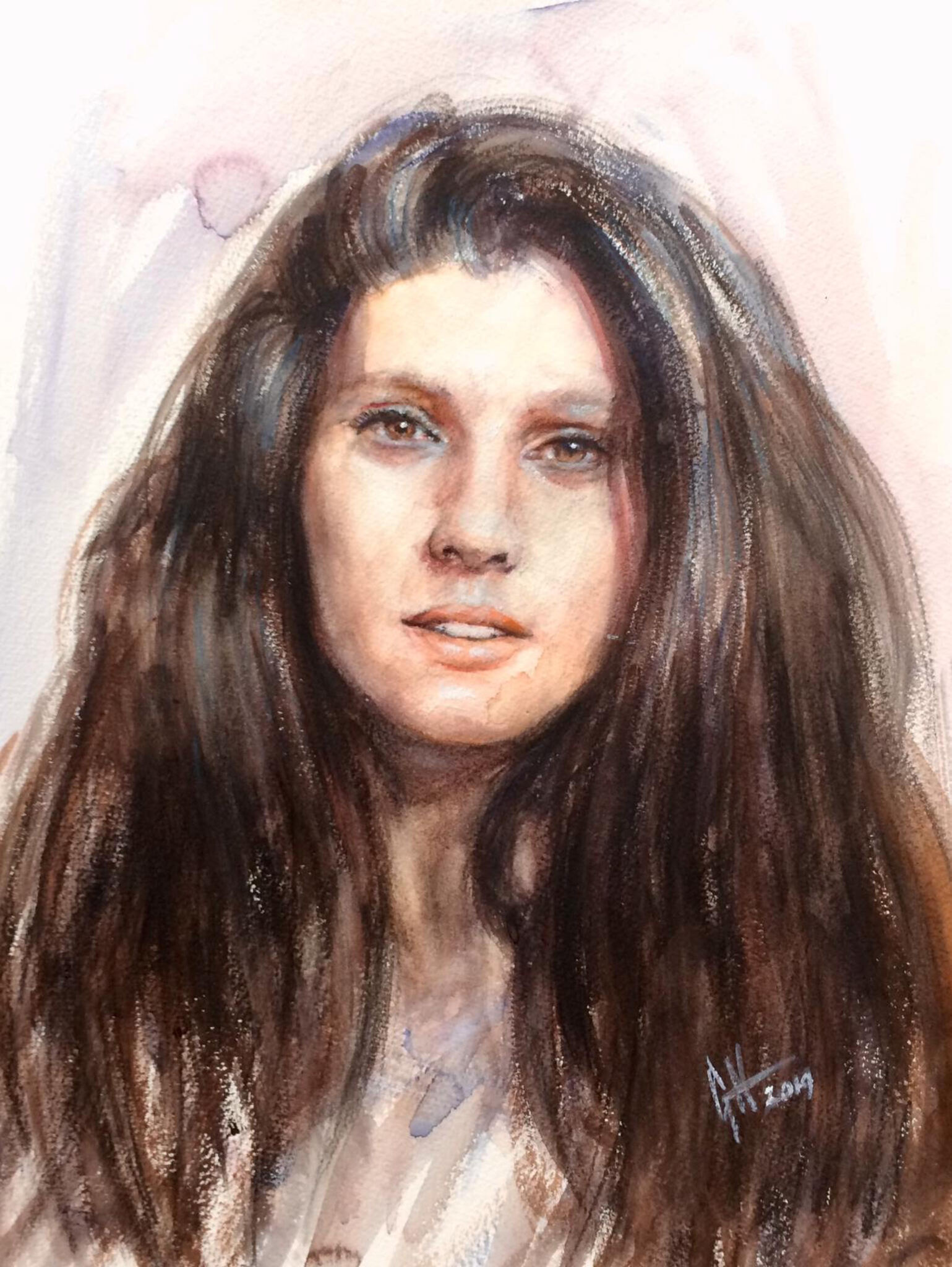 Aquarel van een tijdloos model van de kunstschilder... met aquarelpotloden als basis.