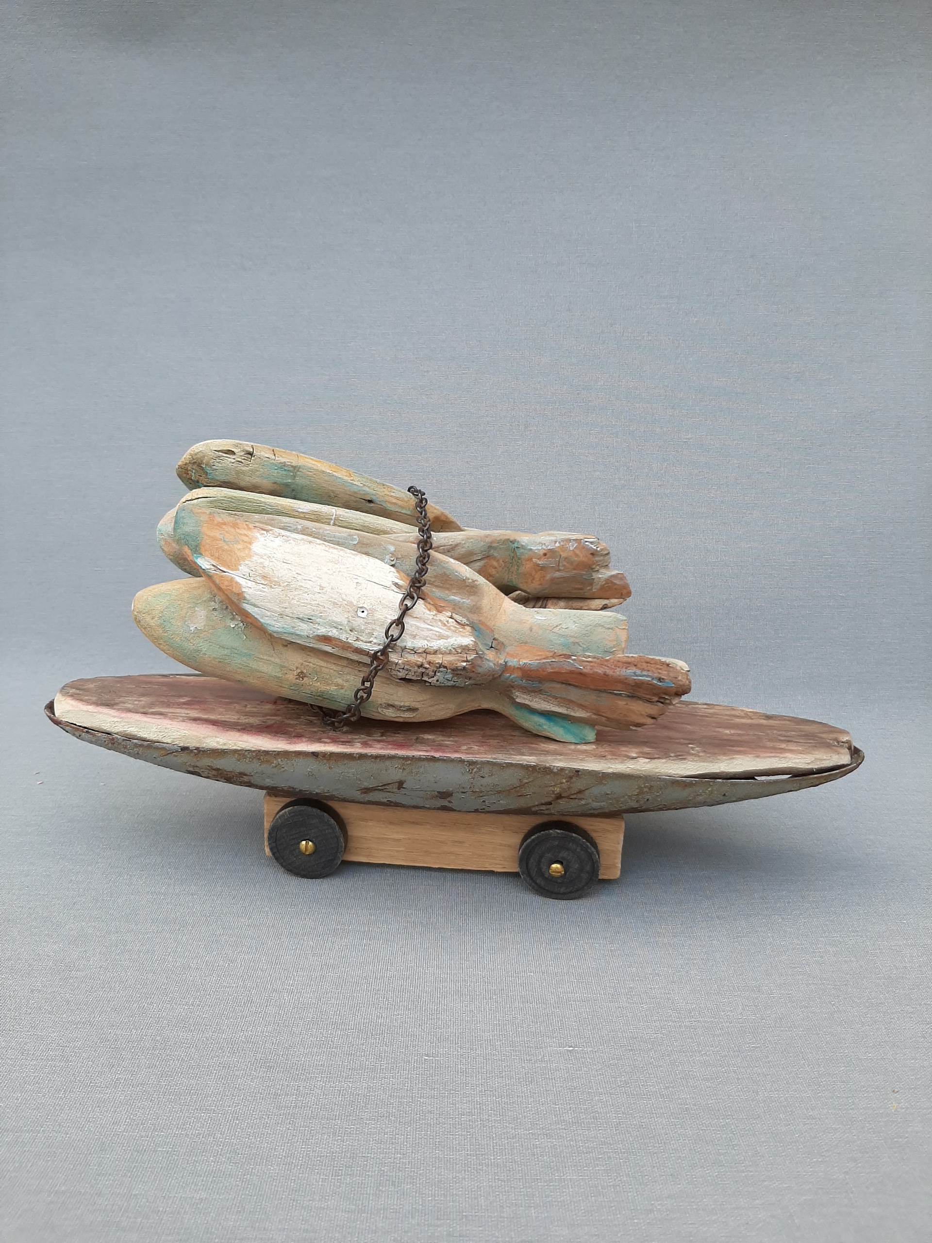 Object in hout en metaal.