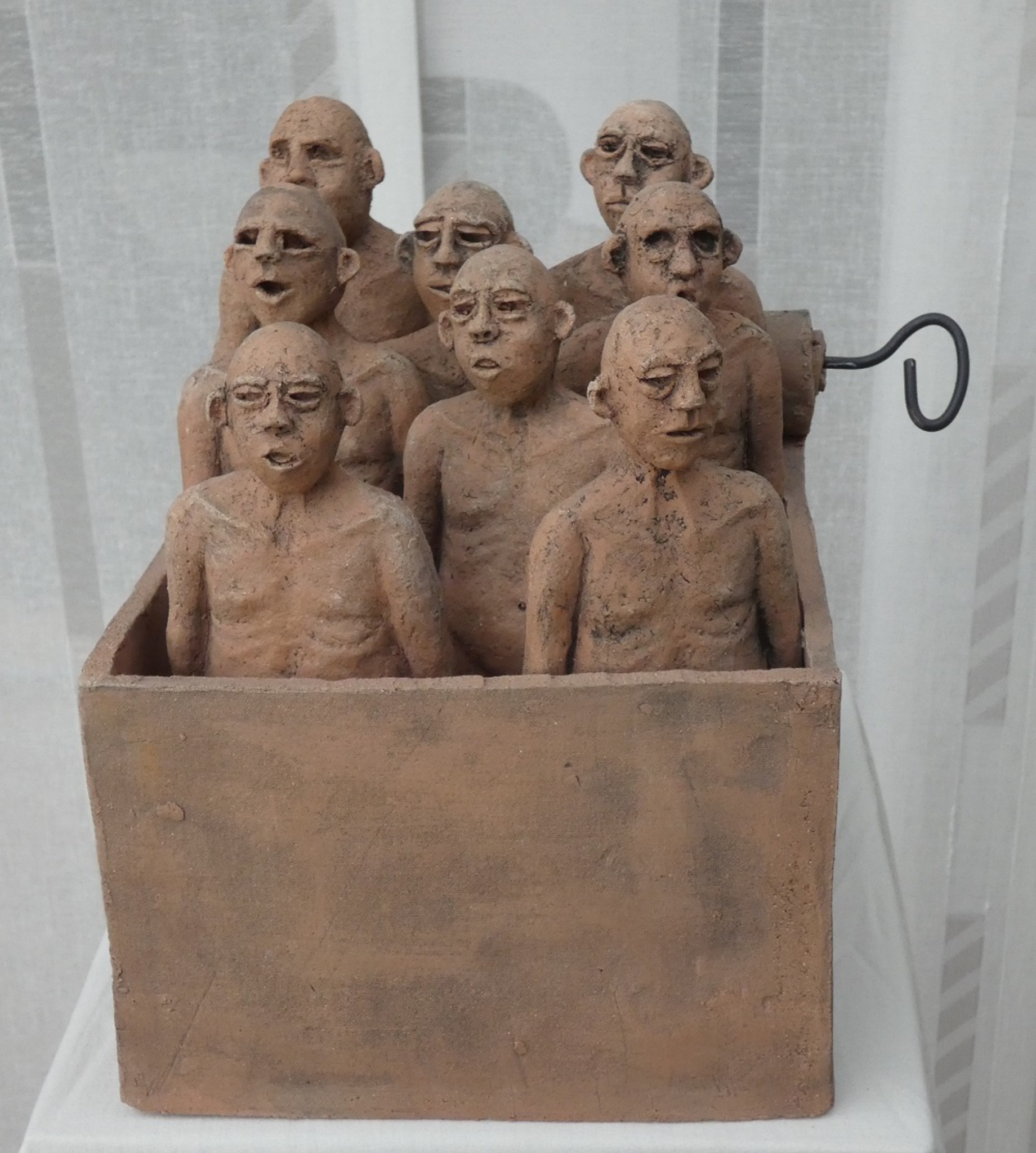 Een aantal mannelijke figuurtjes in een blik, werpen een blik op de buitenwereld!
