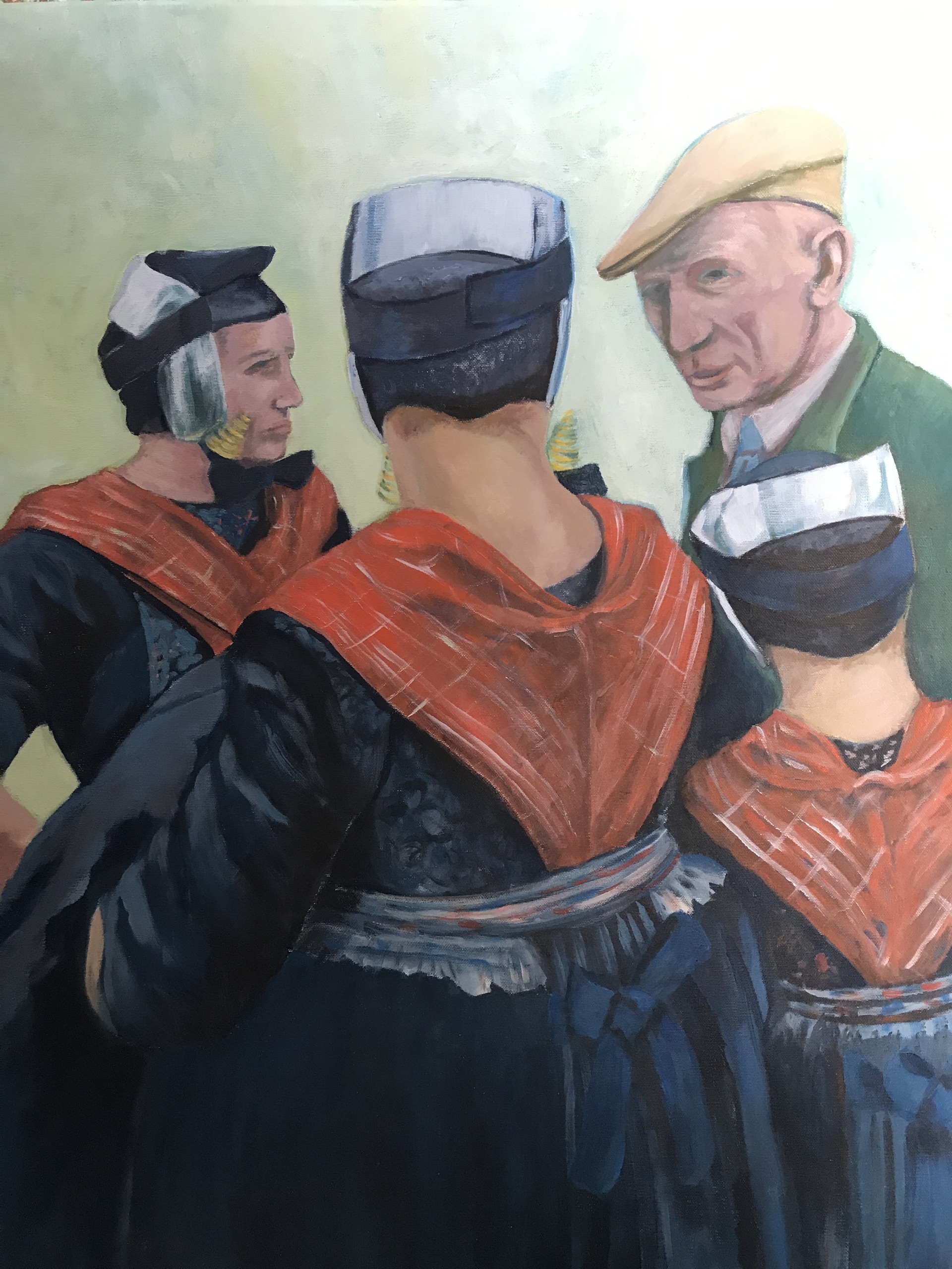 Wat betekent schilderen voor mij. Het is een uitdaging om het witte doek te temmen . Het met kleur bespelen , gebruikmakend van andere materialen zoals verband , krantenpapier , zand en druksels. Het begint met kleurlagen over elkaar , zodat de onderste lagen terug te vinden zijn in het uiteindelijke werk. Al doende ontwikkeld zich iets , het vormt zich , een beeld of gedachte wordt zichtbaar .