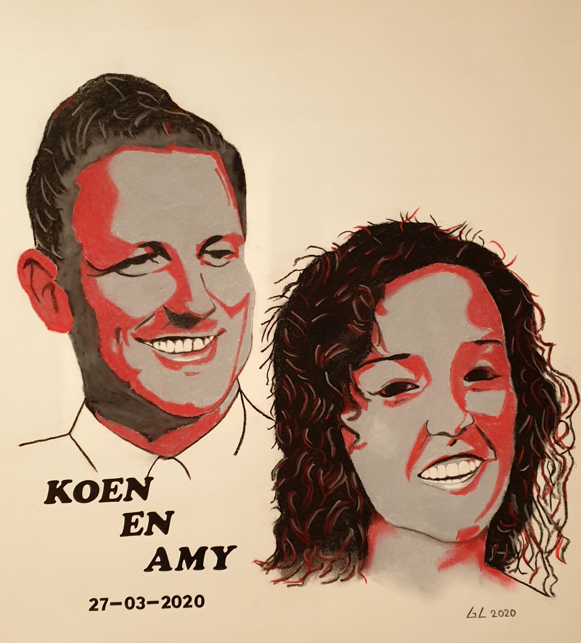 pastel portret van Koen en Amy
