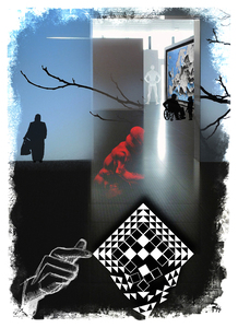 Duister is oorsprong en bestemming, licht een intermezzo. (Ingmar Bergman) Hintjens creëert digitale composities die verhalend, surreëel zijn.
