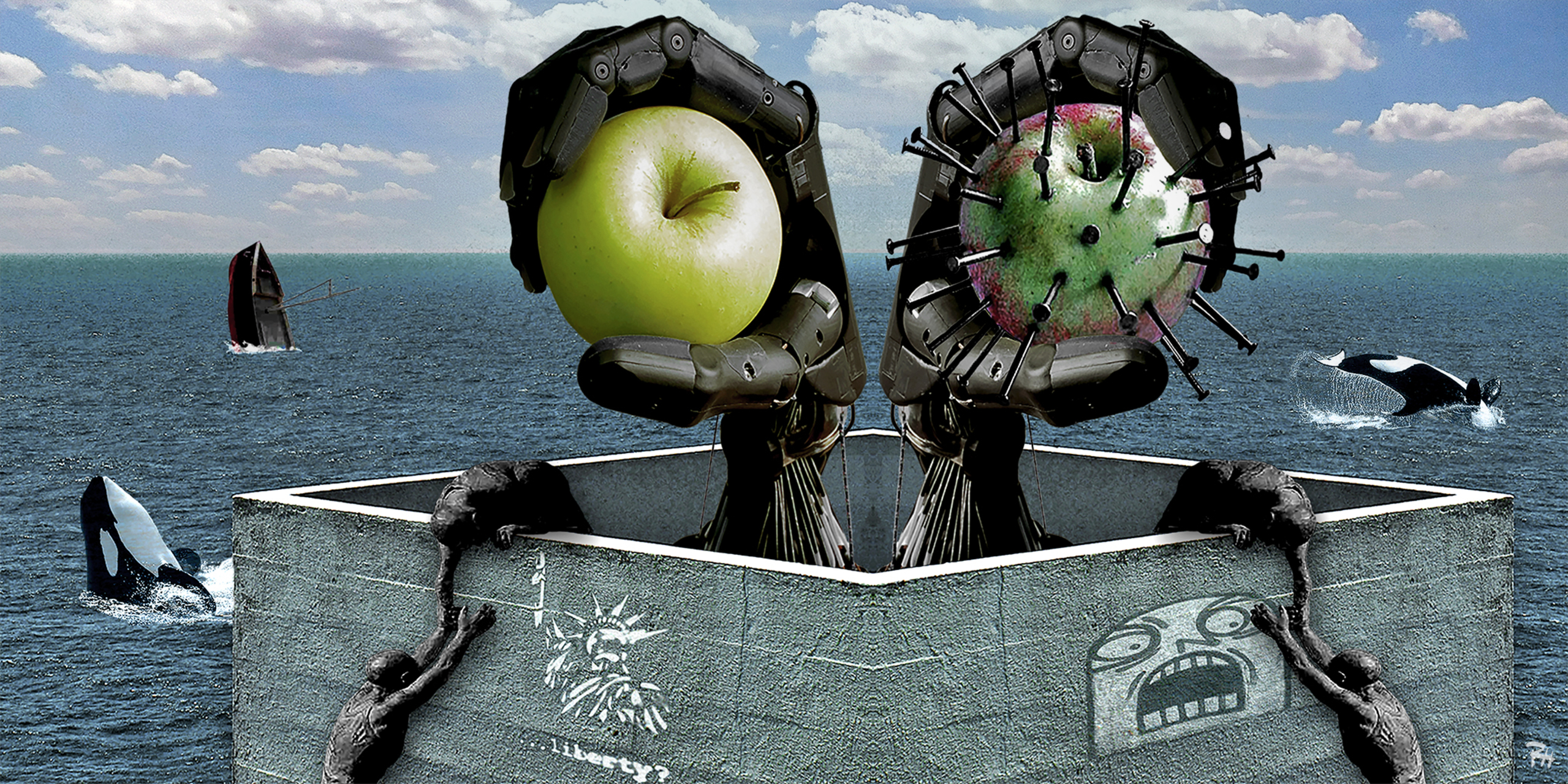 Zee Ship Appels Vrijheid Boot Sea Vluchteling Apples Fugitive Liberty Robot Orca Sinking Zinkende