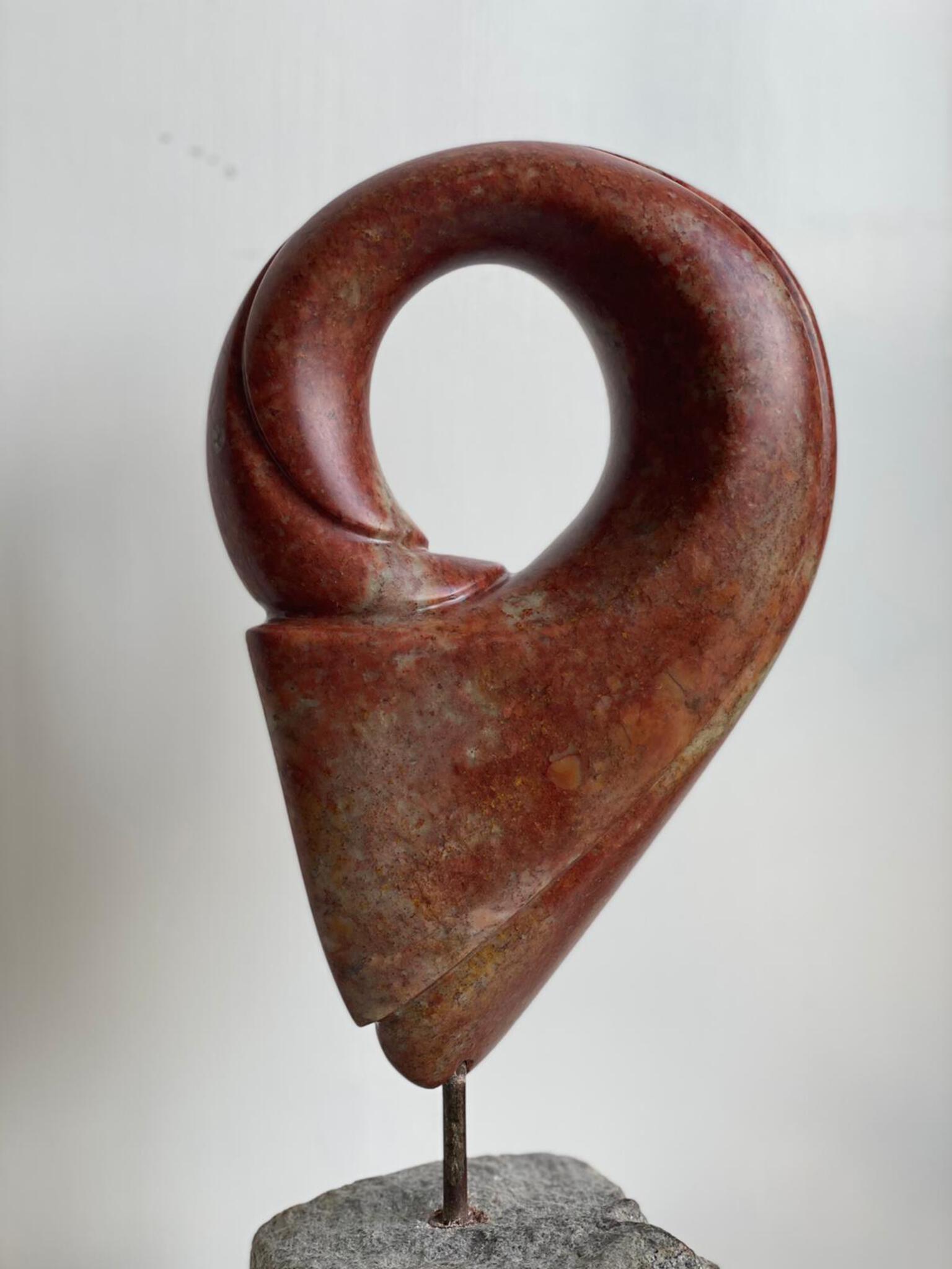 Mooie rode steen. Er zaten veel kristallen in en er brak een flink stuk af . Dat samen heeft de vorm bepaald.