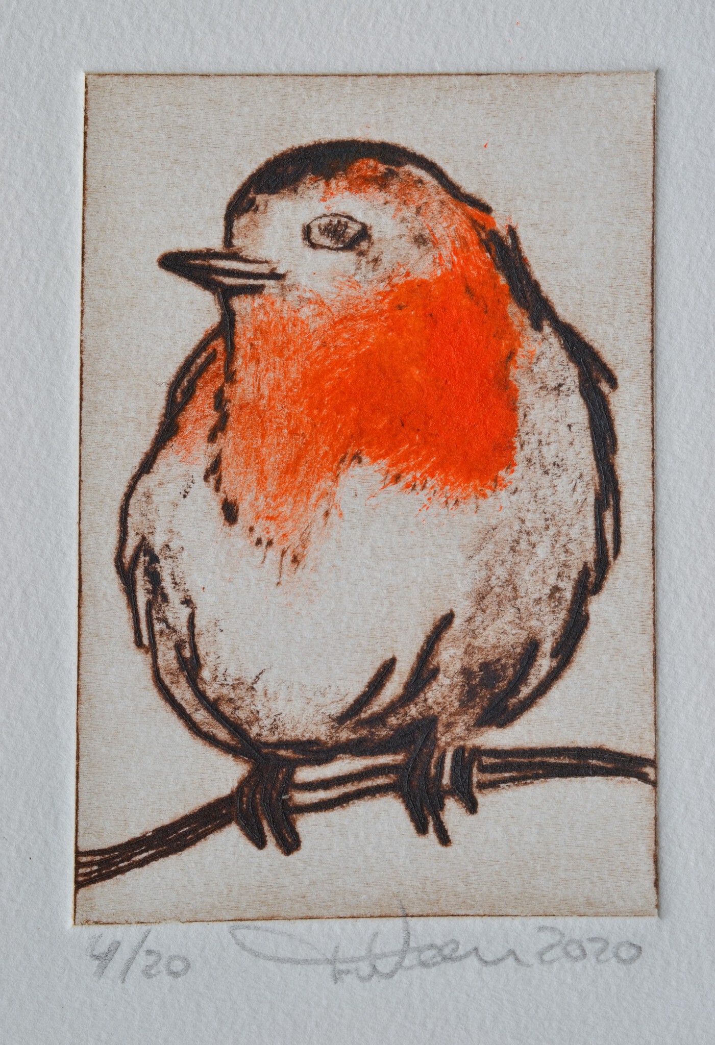 Roodborstje III - Rouge Gorge III - Robin III - droge naald - meerkleuren druk - oplage 1/20 - drypoint - multicolour print - edition 1/20