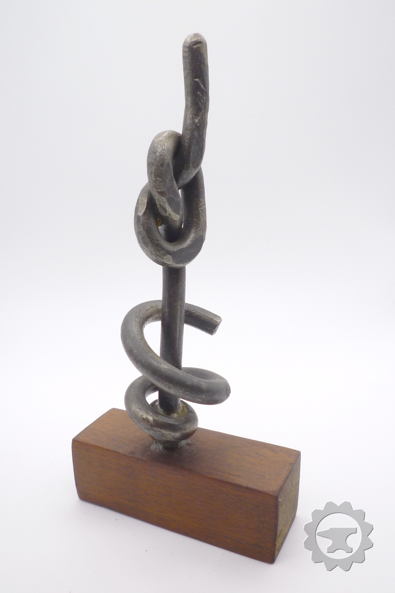 Modern Beeld Object Sokkel Knoop Minimalistisch Cadeau Sculptuur Geschenk Origineel Geometrisch Houten Metalen Artistiek Kado Unica Relatiegeschenk Industrieel Ijzeren Ambachtelijk Trechter Smid Smeden Stalen Smeedwerk