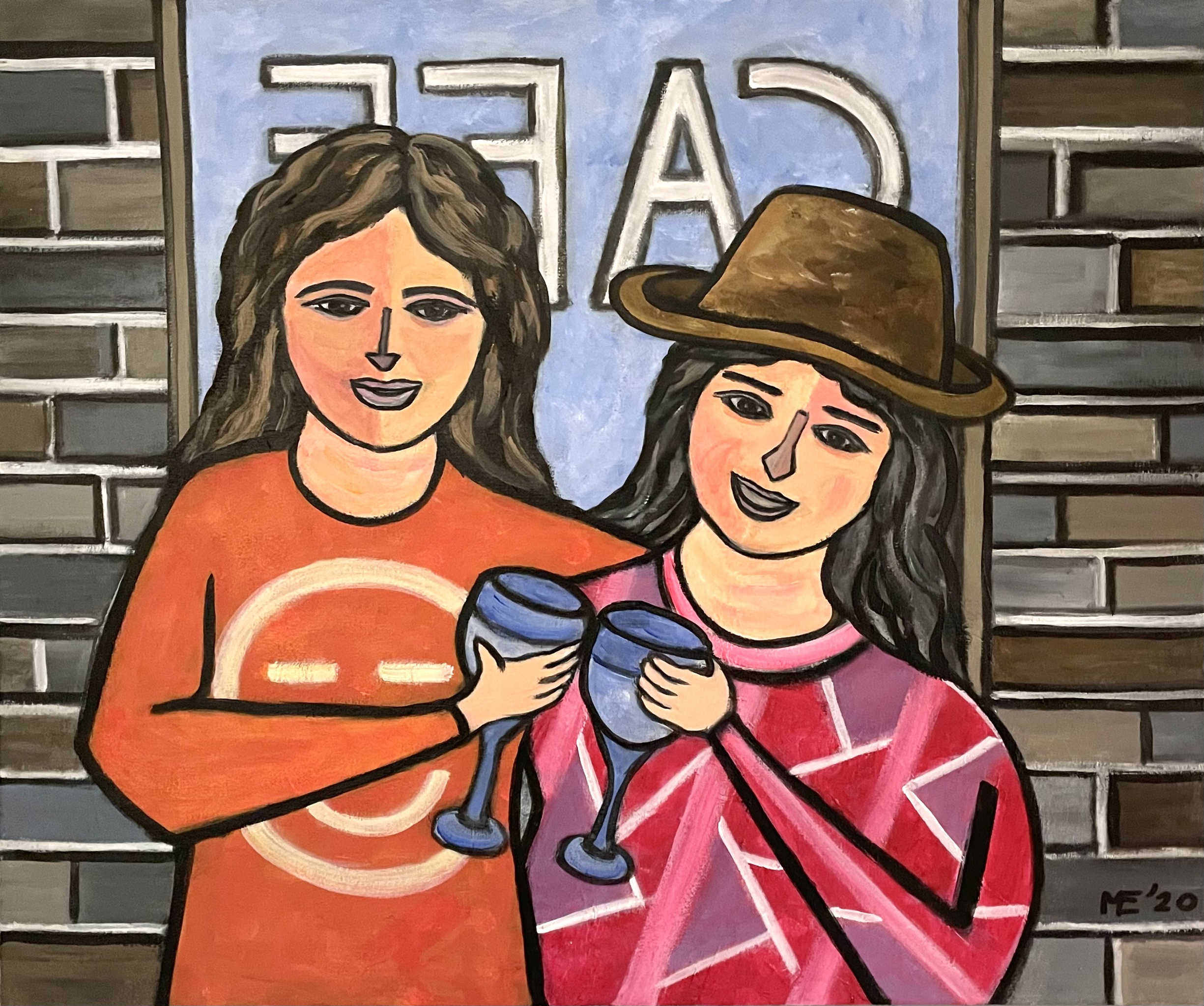Plaatje van 2 proostende dames. Gemaakt in Coronatijd toen de horeca gesloten was en we beseften hoezeer we terug verlangden naar andere tijden.