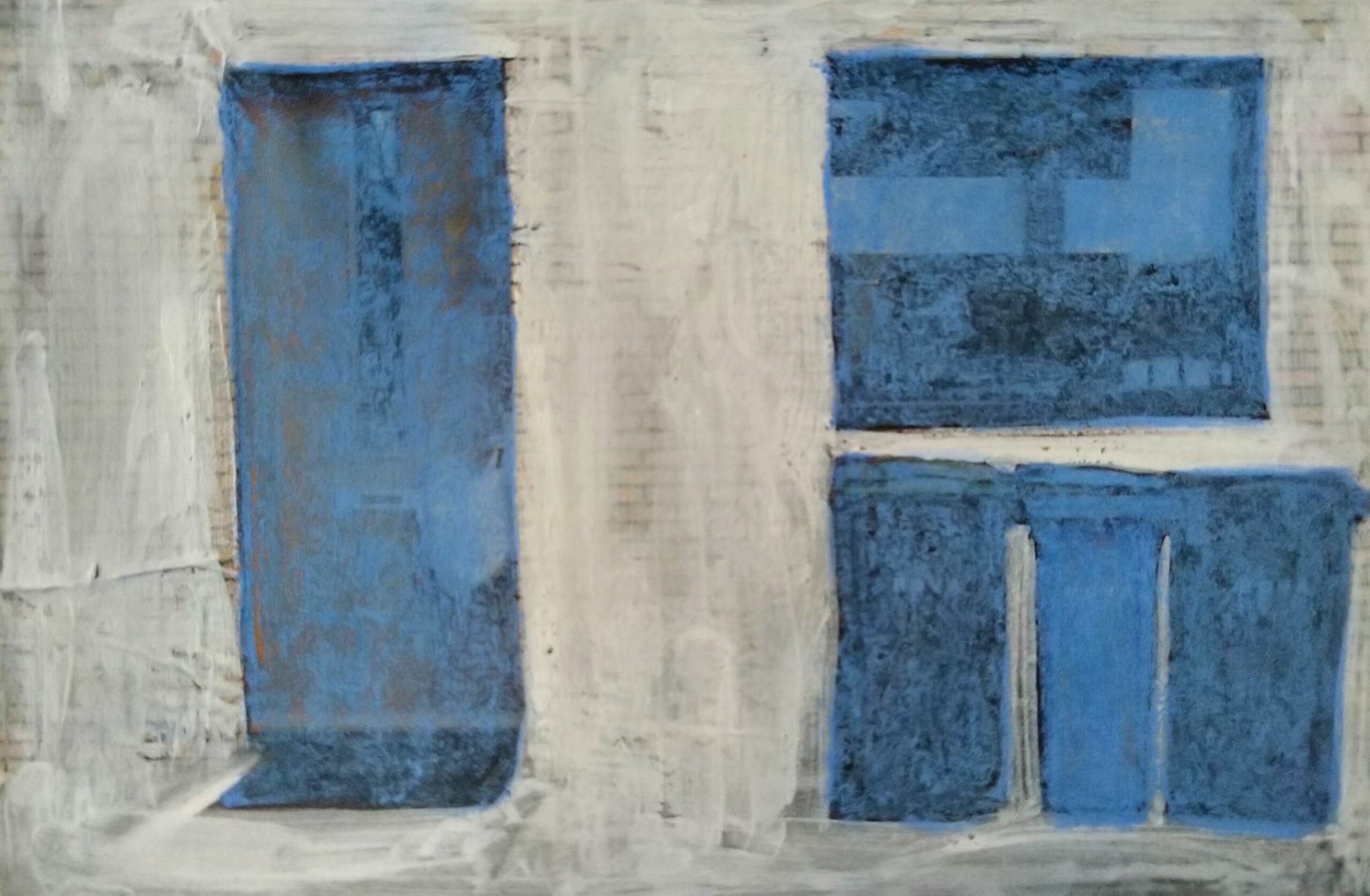 Bestaande foto, witte acrylverf en blauw krijt