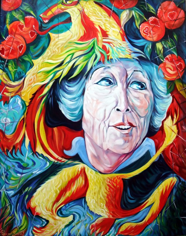 Op de schildersclub waar ik docent ben hebben de cursisiten allemaal een portret van Hare Majeseit geschilderd en ik kon toen vanzelfsprekend niet achter blijven. Het hier getoonde portret is daarvan het resultaat.